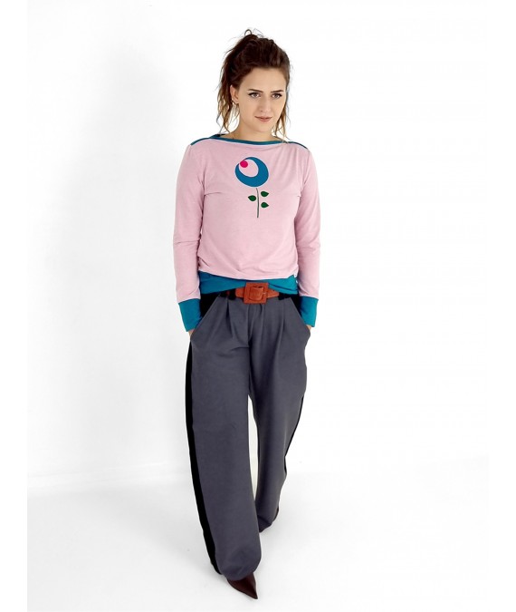 Elegant und Leger, Longsleeve mit Stoff Applikationen.