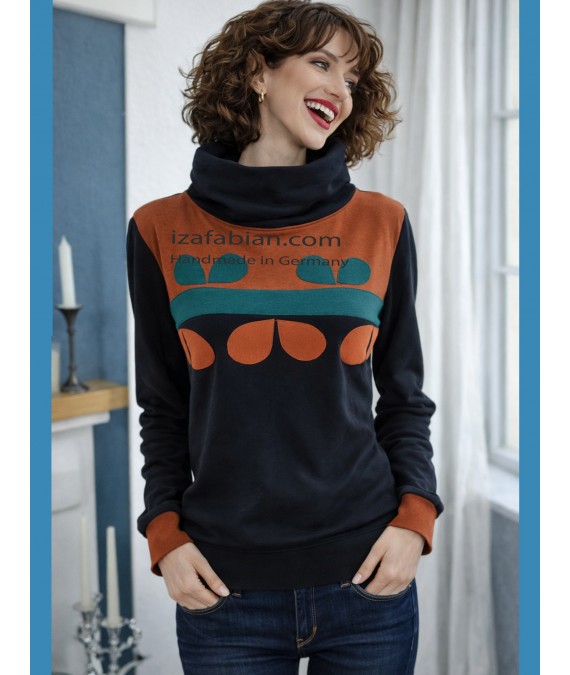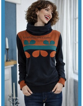Damen Hoodie mit Hohen Schlauchkragen und Flora Mustern an Oberen Teil.