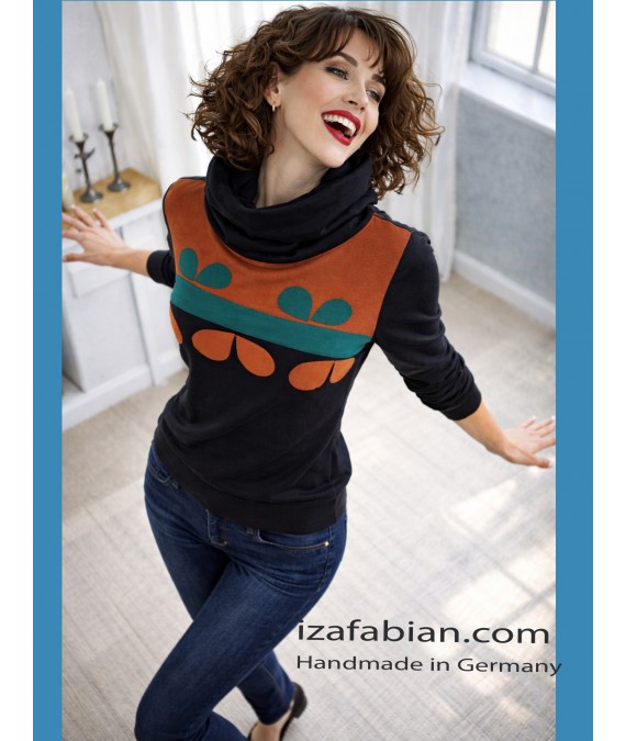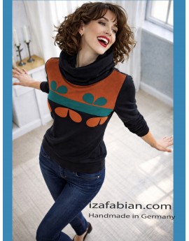 Damen Hoodie Set , Longsleeve und Loop Schal. Retro Blume Applikation.