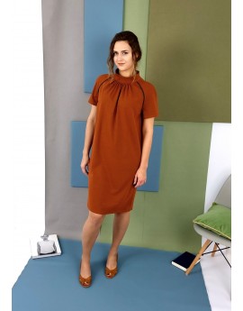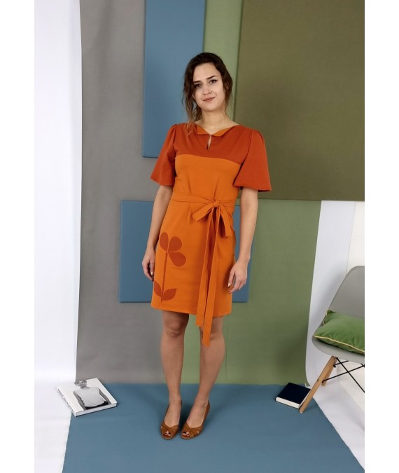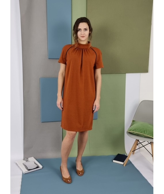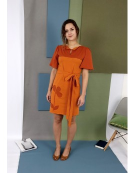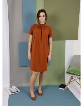 ...Kleid aus Baumwolljersey. Passen am Front und Rücken. Gebrannte Orange kombiniert mit Rost.