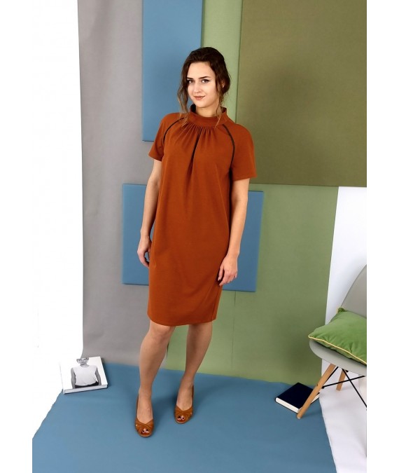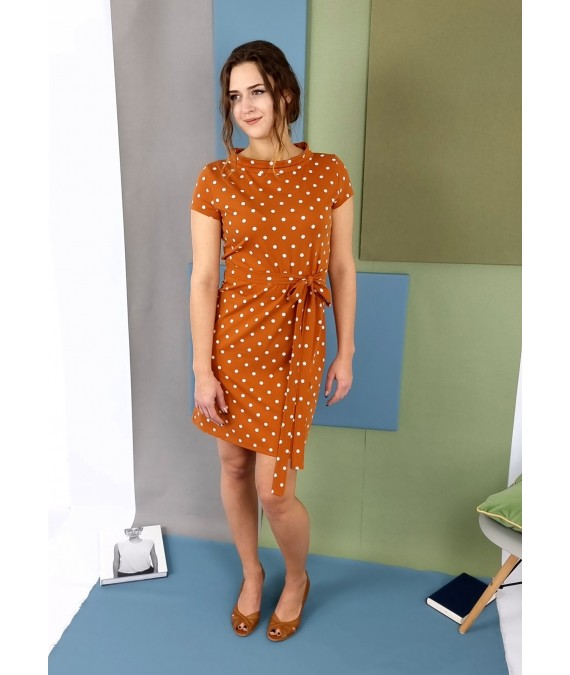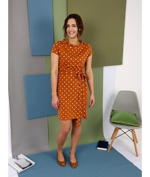 Kleid aus Baumwolljersey. Rost, weiß gepunktet.