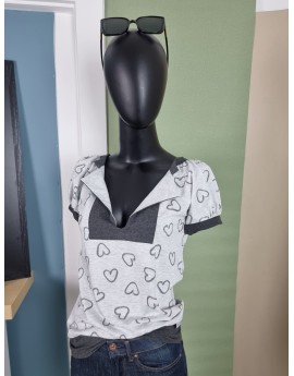 Farbe: Grau-Melange mit Herzen, Details in Anthrazit