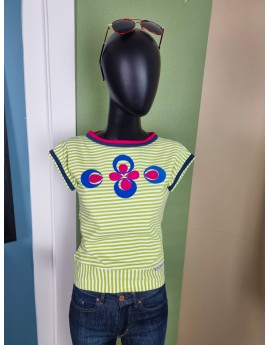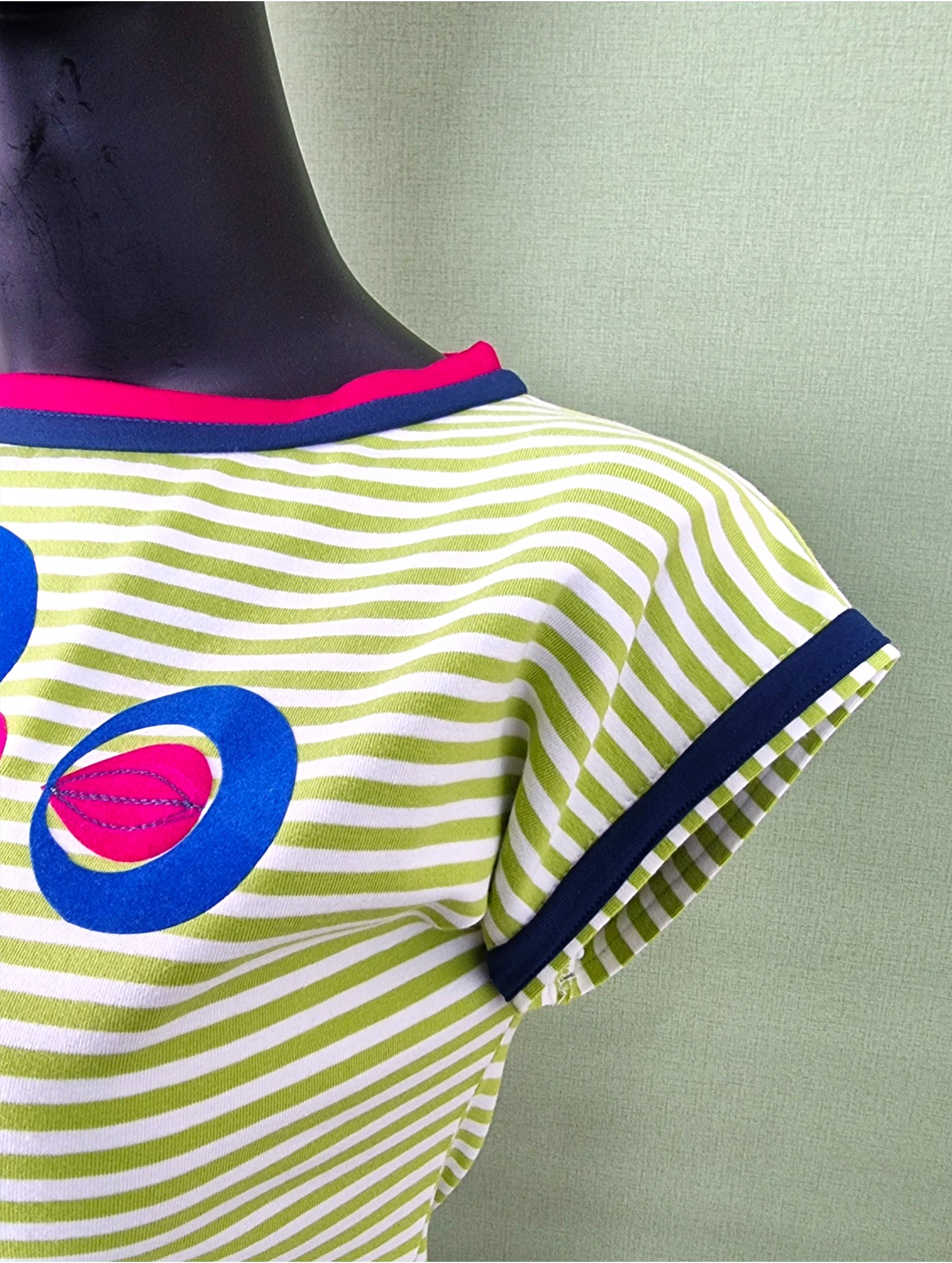• Farbe: Limone-Weiß gestreift, Details in Fuchsia, Petrol & Royalblau
