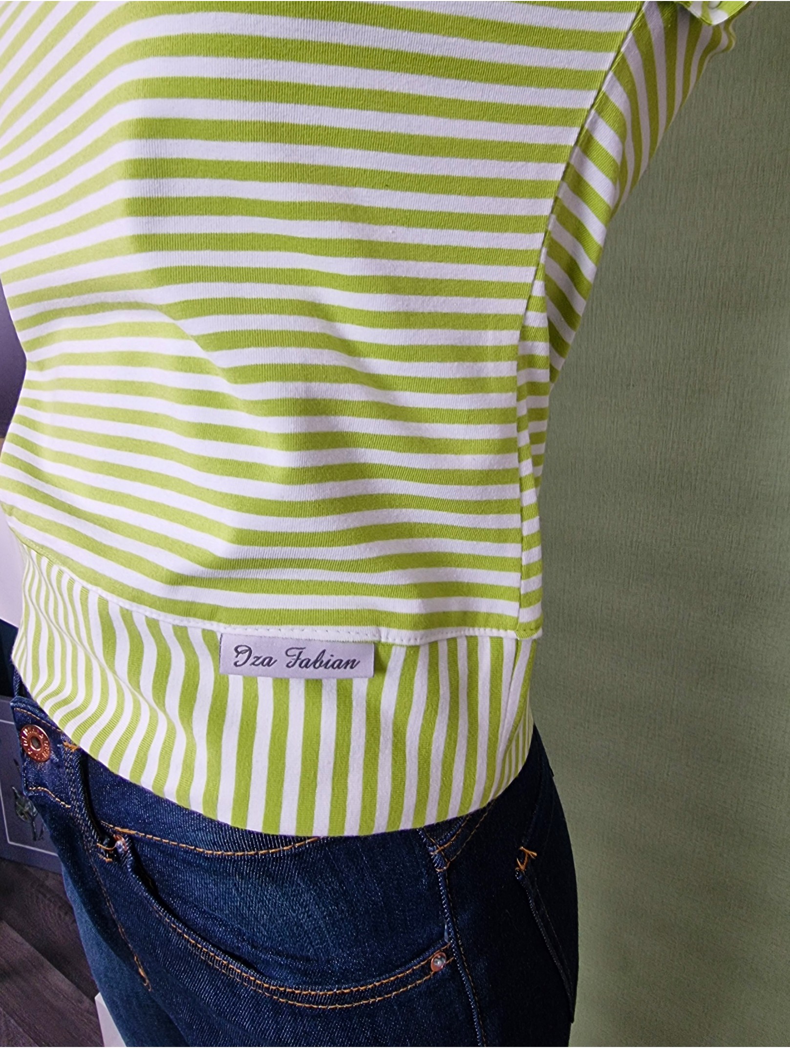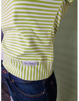 Damen Jersey-Shirt in Limone mit Retro-V-Linie – Handmade