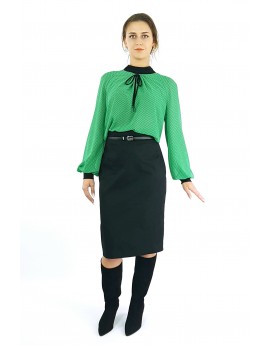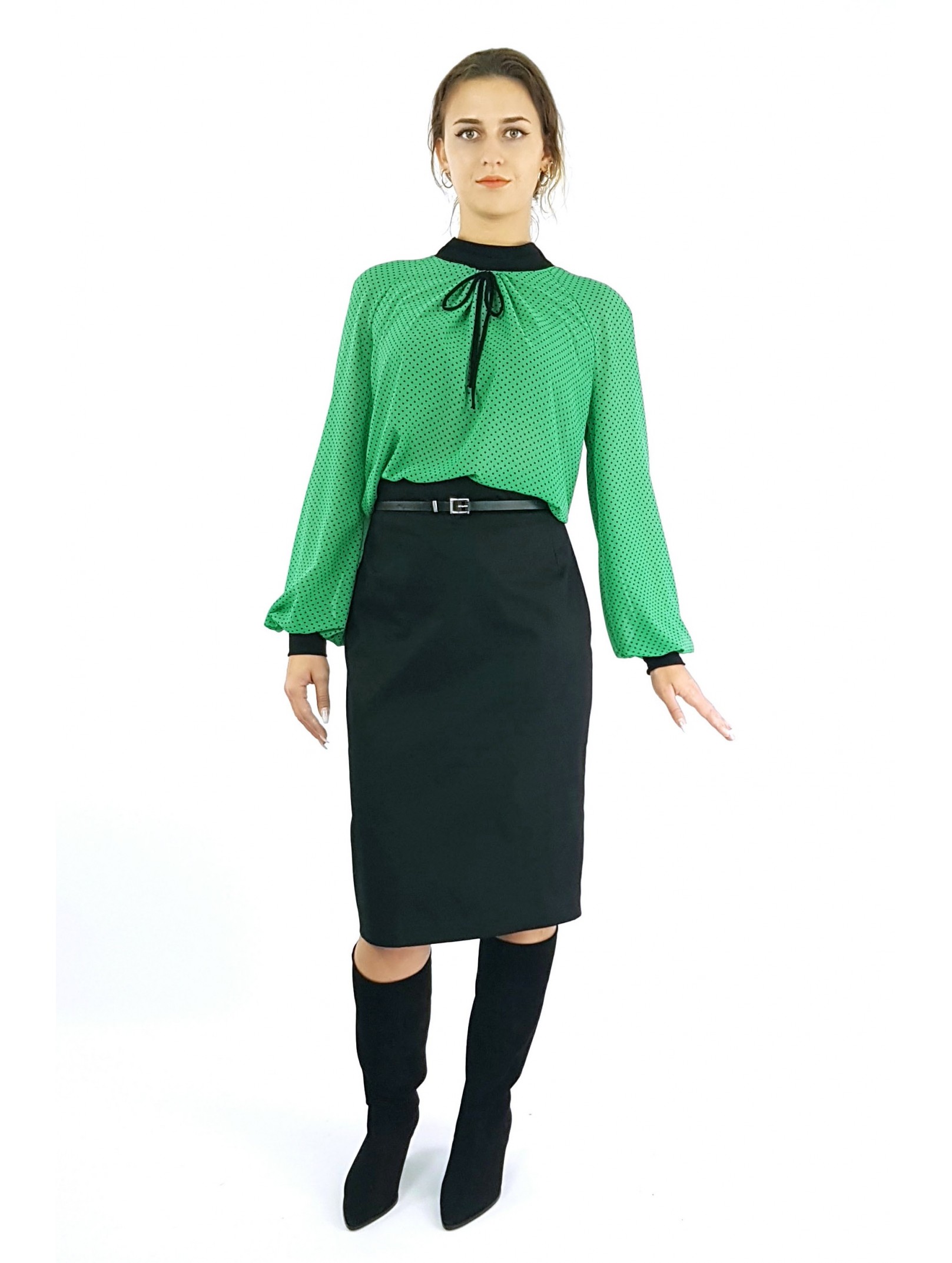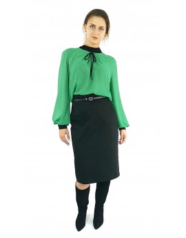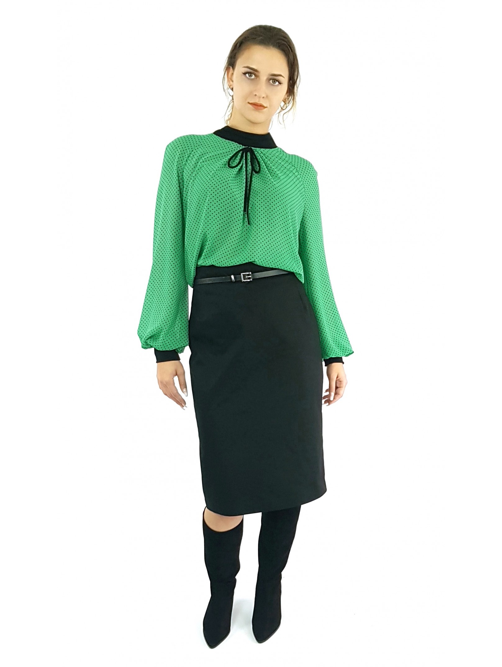 Lockere Grüne Bluse aus leichte Georgette Crepe mit feinen schwarzen Punkten.