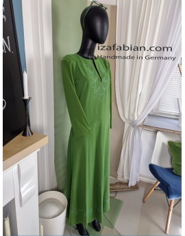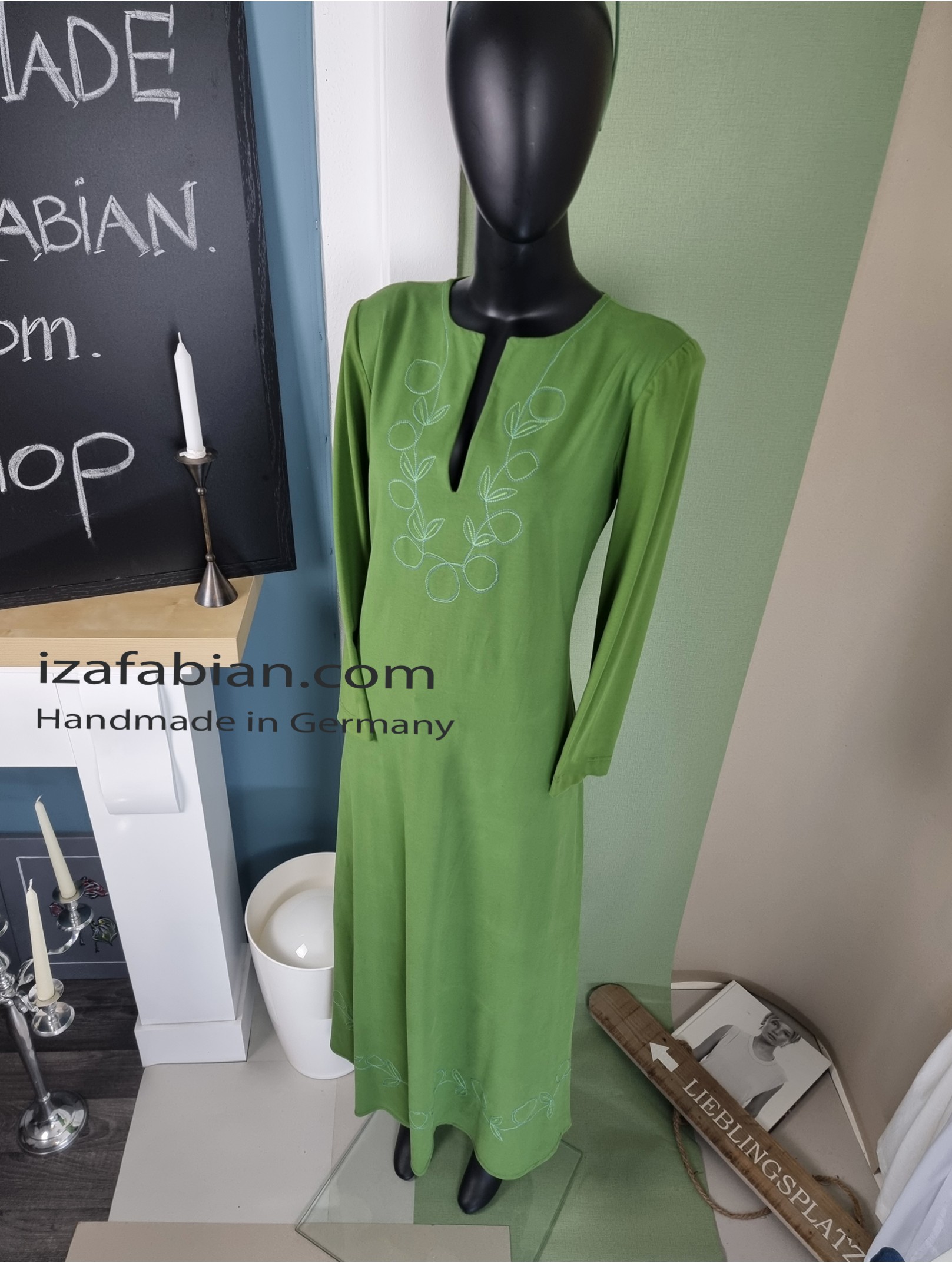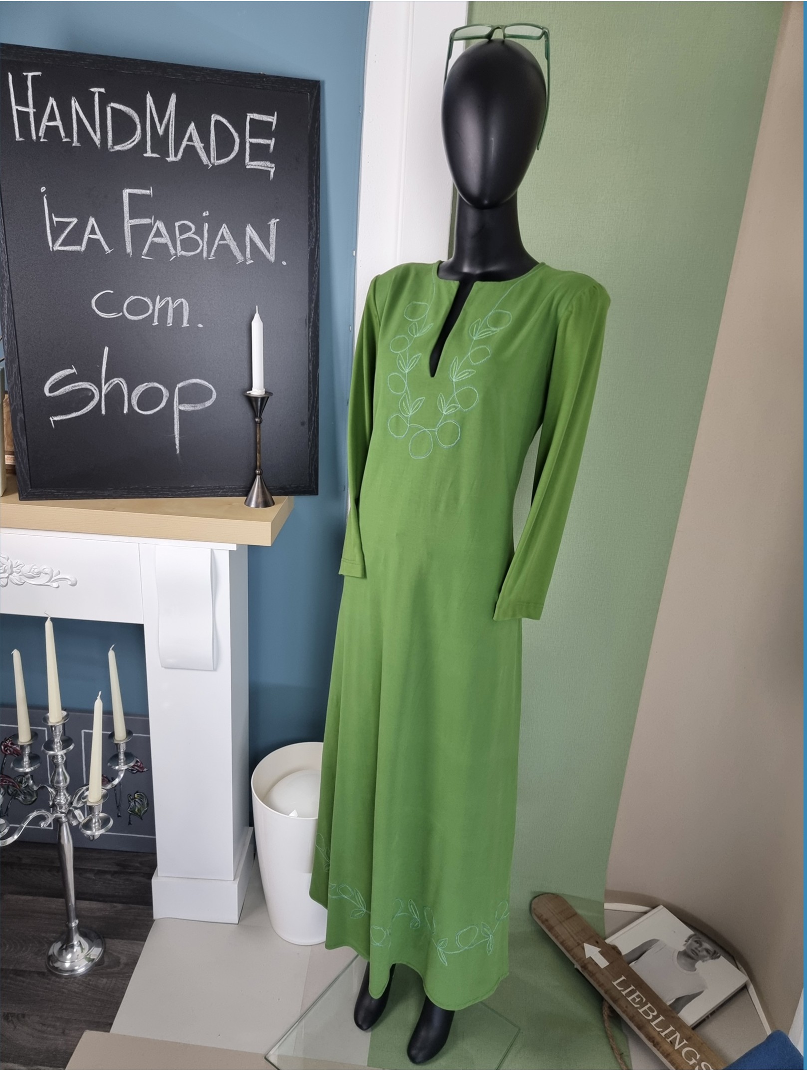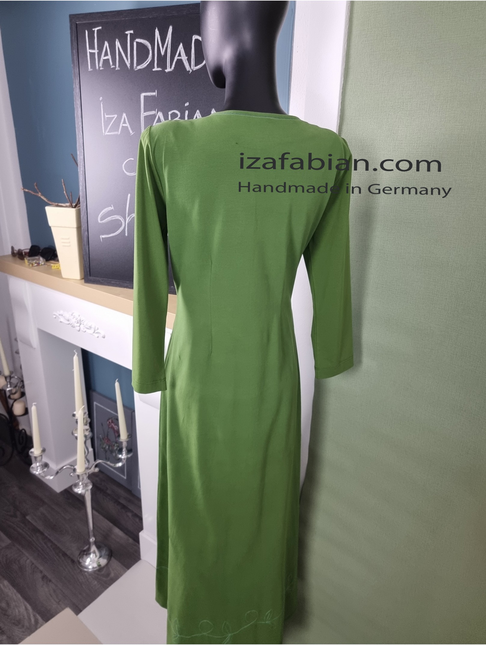 Ein elegantes, unkompliziertes Kleid für Alltag und besondere Momente: Dieses lange Jersey-Kleid verbindet klare Linien mit feinen Stickereidetails und wirkt dadurch feminin, ruhig und modern zugleich.