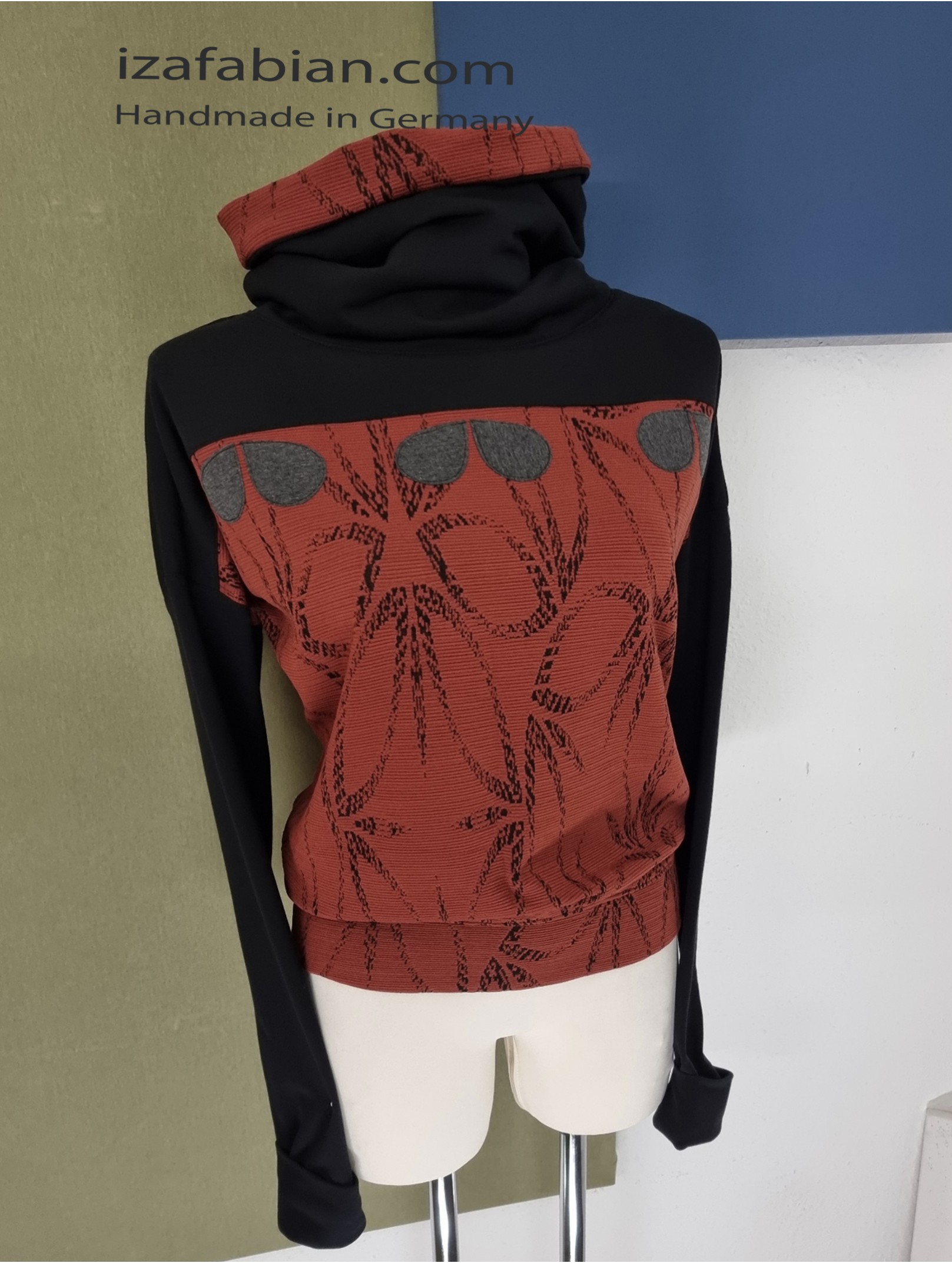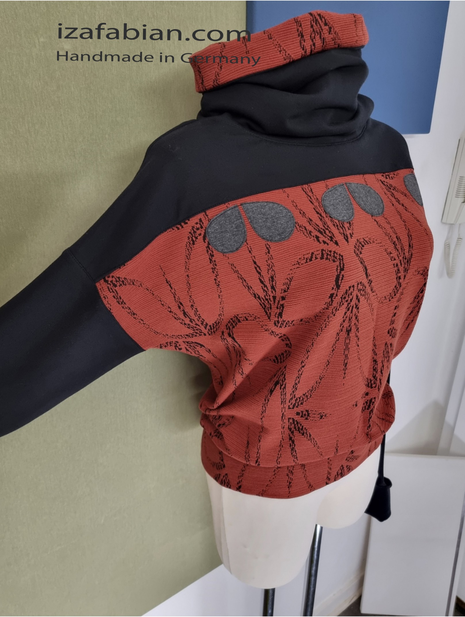 Die schwarzen Ärmeln sind absichtlich länger genäht, und sollten über Bündchen gerafft getragen werden. (Ca.64 cm.)