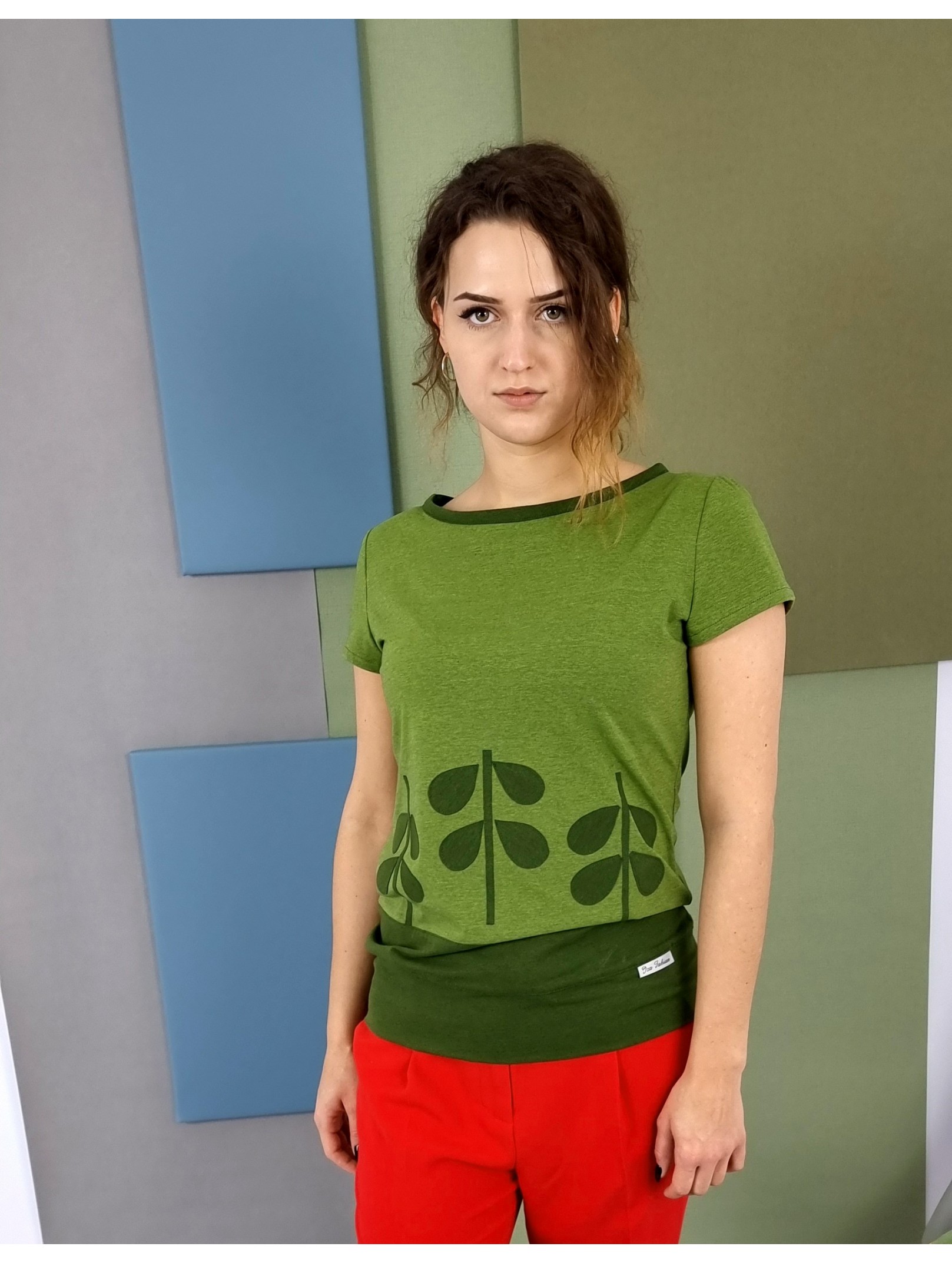 Farben : melierter Kiwi und Tannengrün, mittelschwere, sehr weiche Stoff.