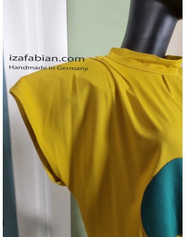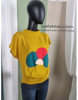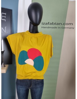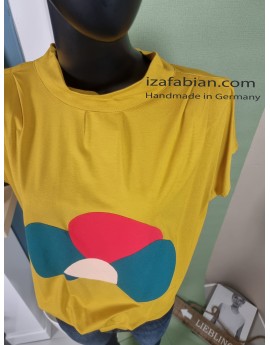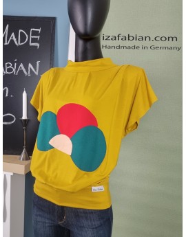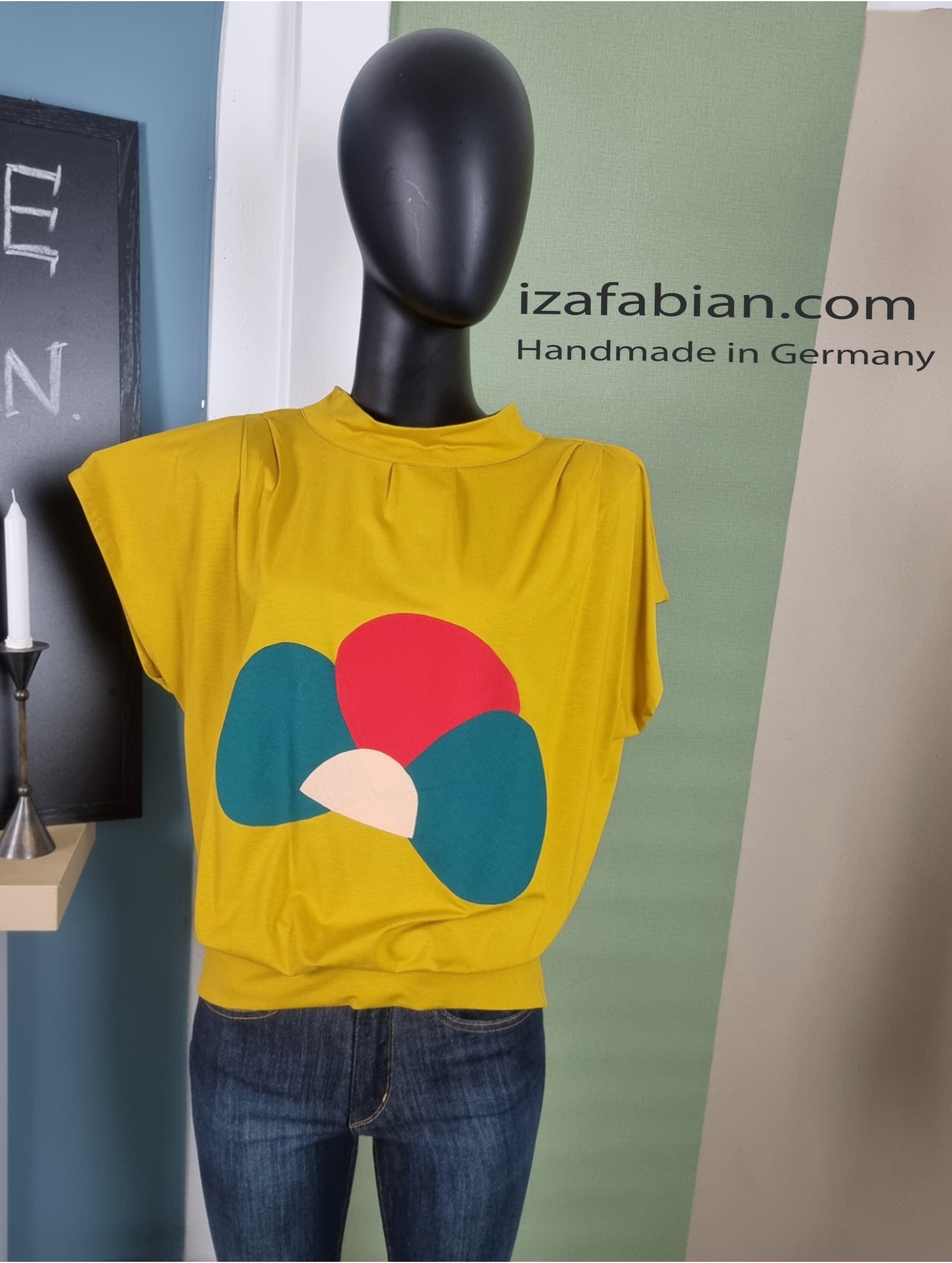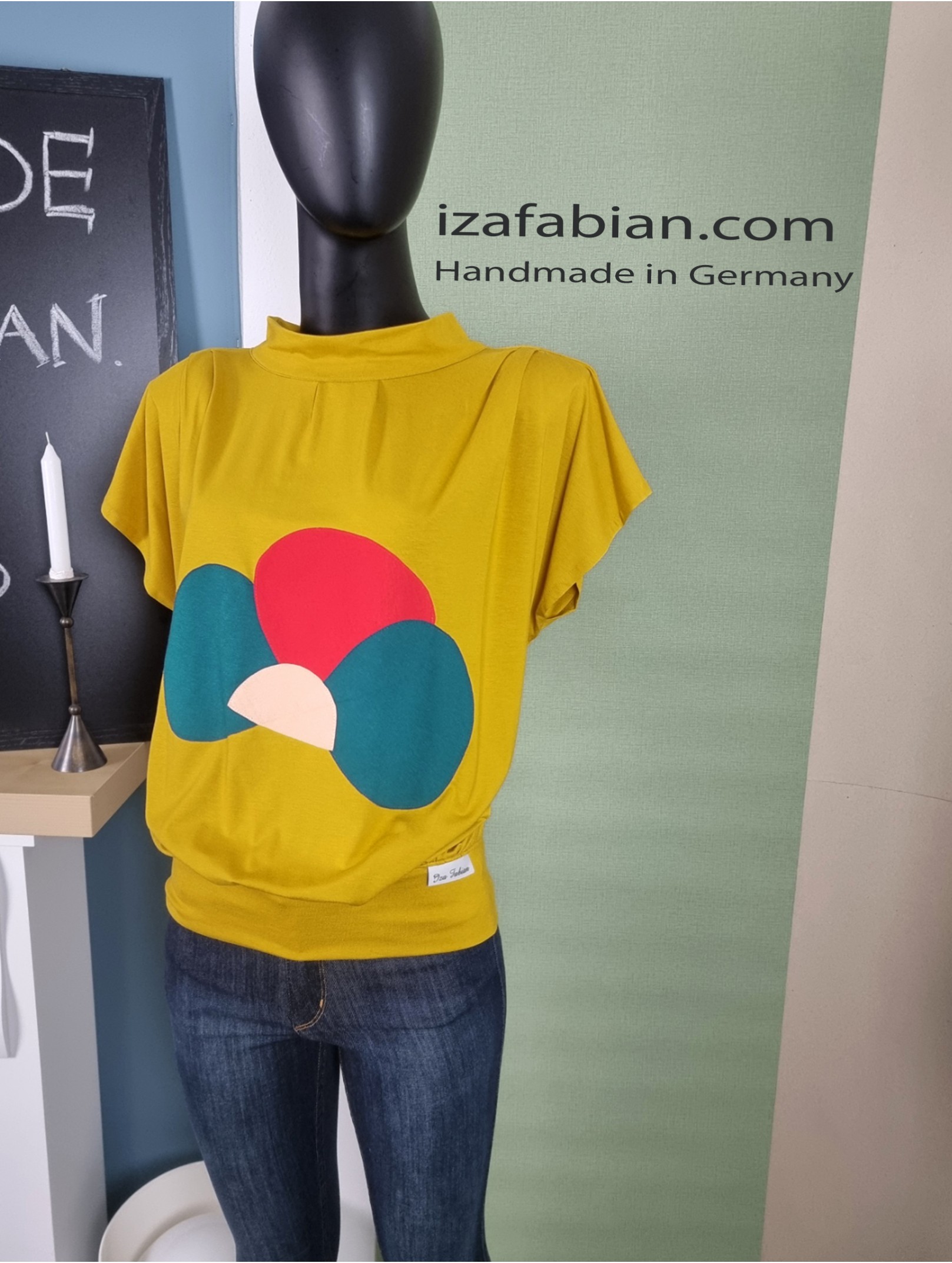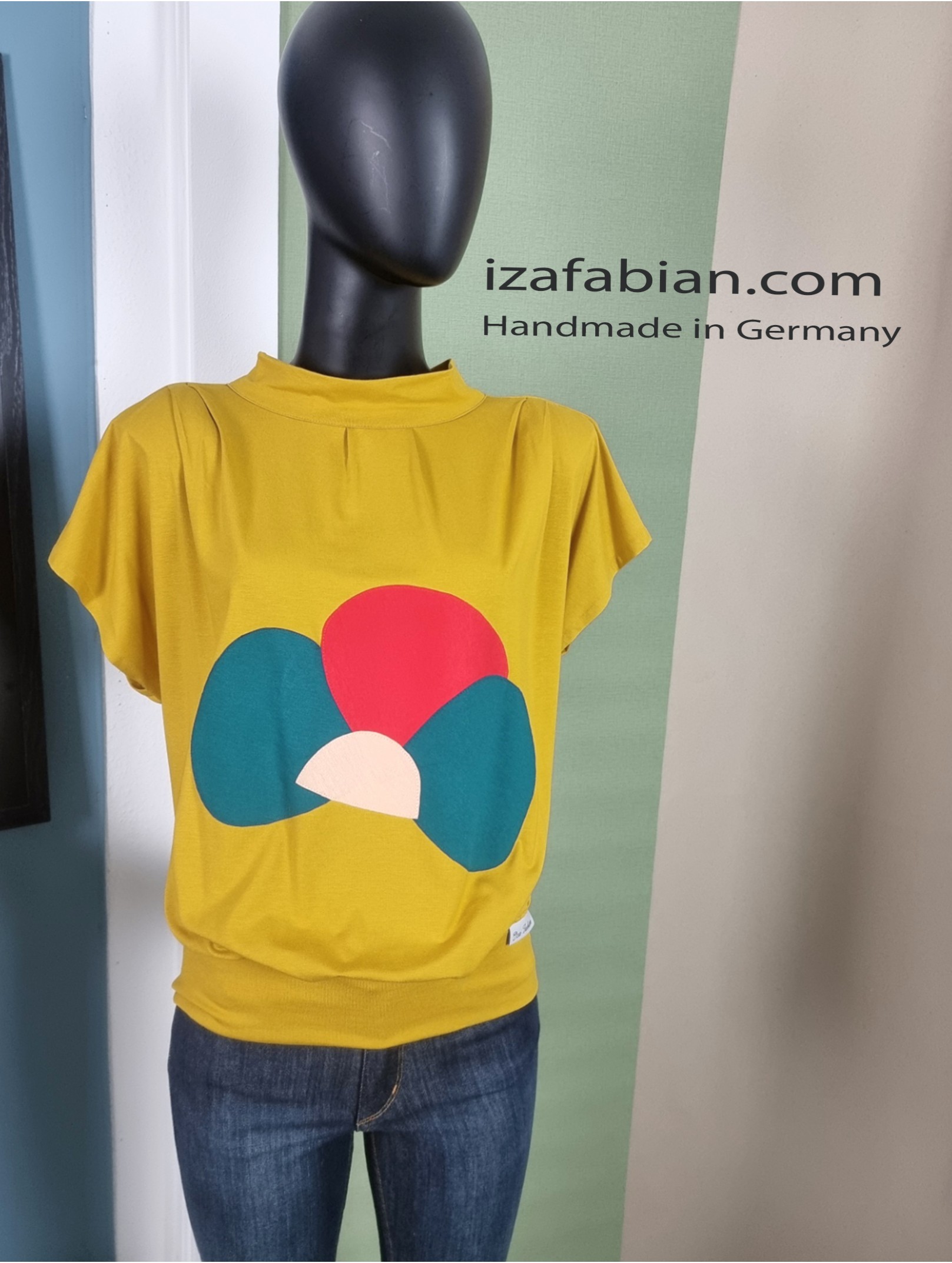 Farbe: Currygelb mit kontrastreicher Stoffapplikation auf der Front