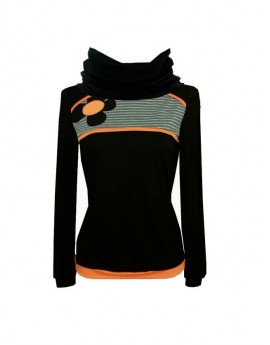 Iza Fabian, Rollkragen Pullover in Rost, Blumige Einsätze.