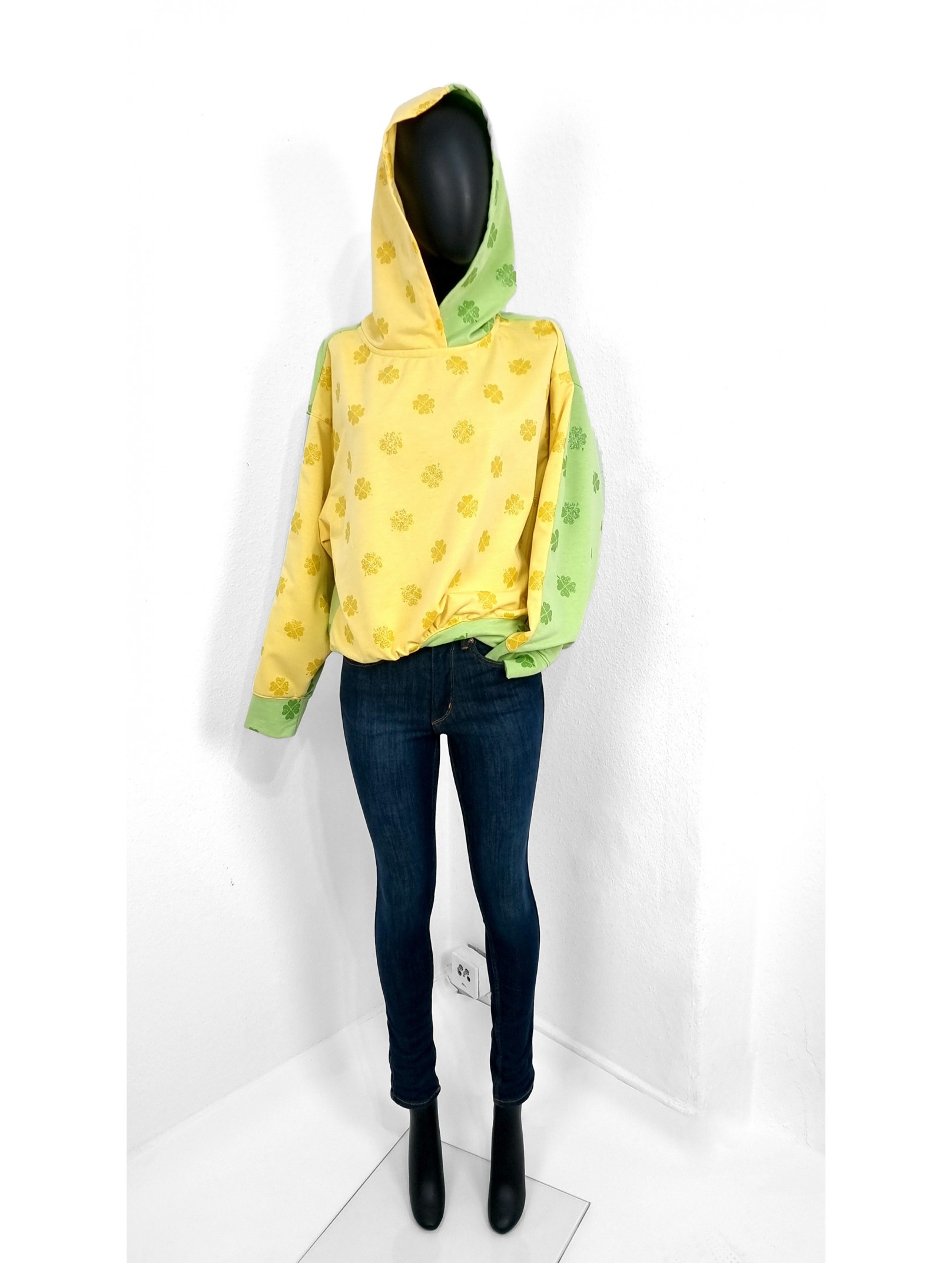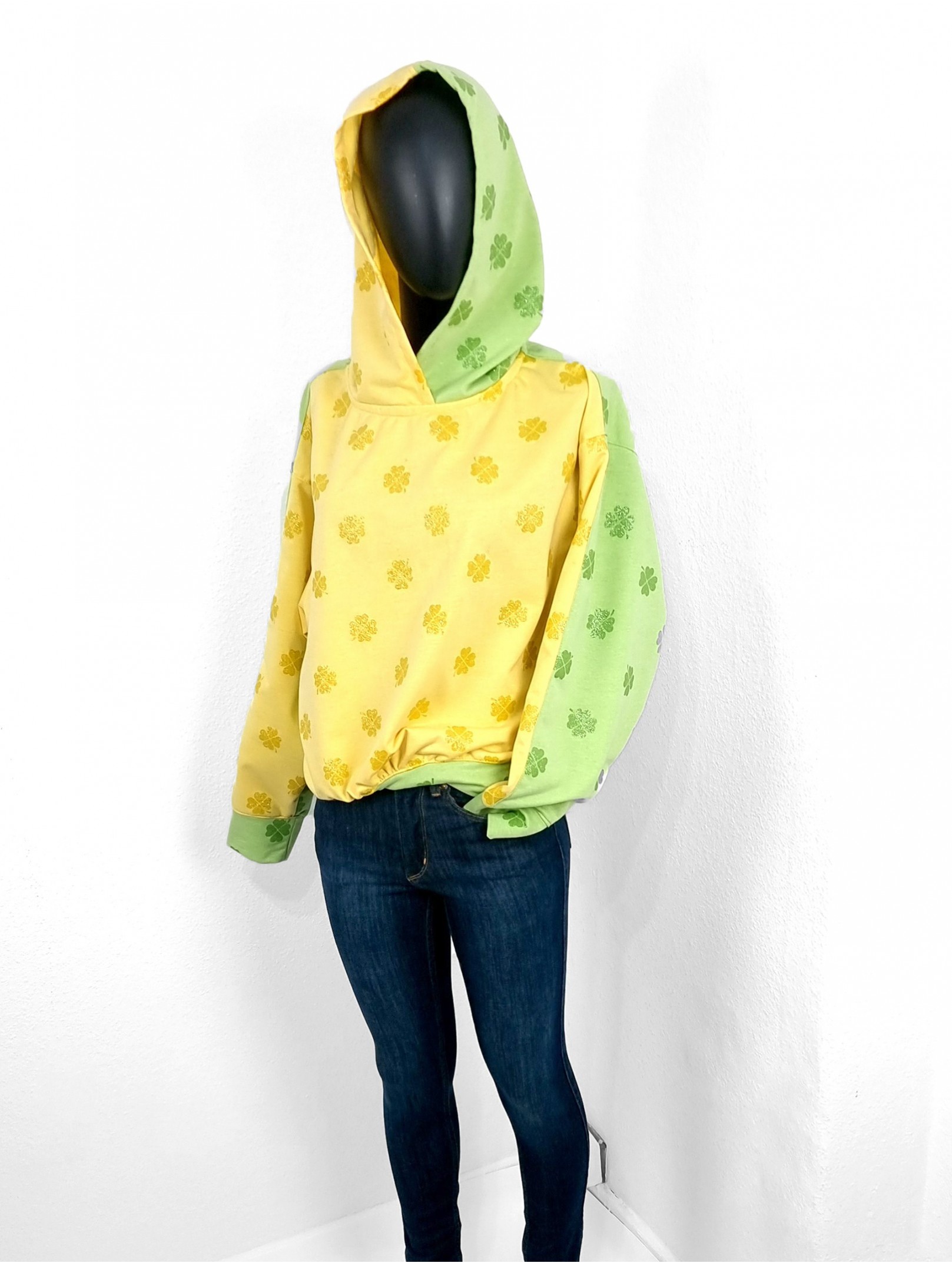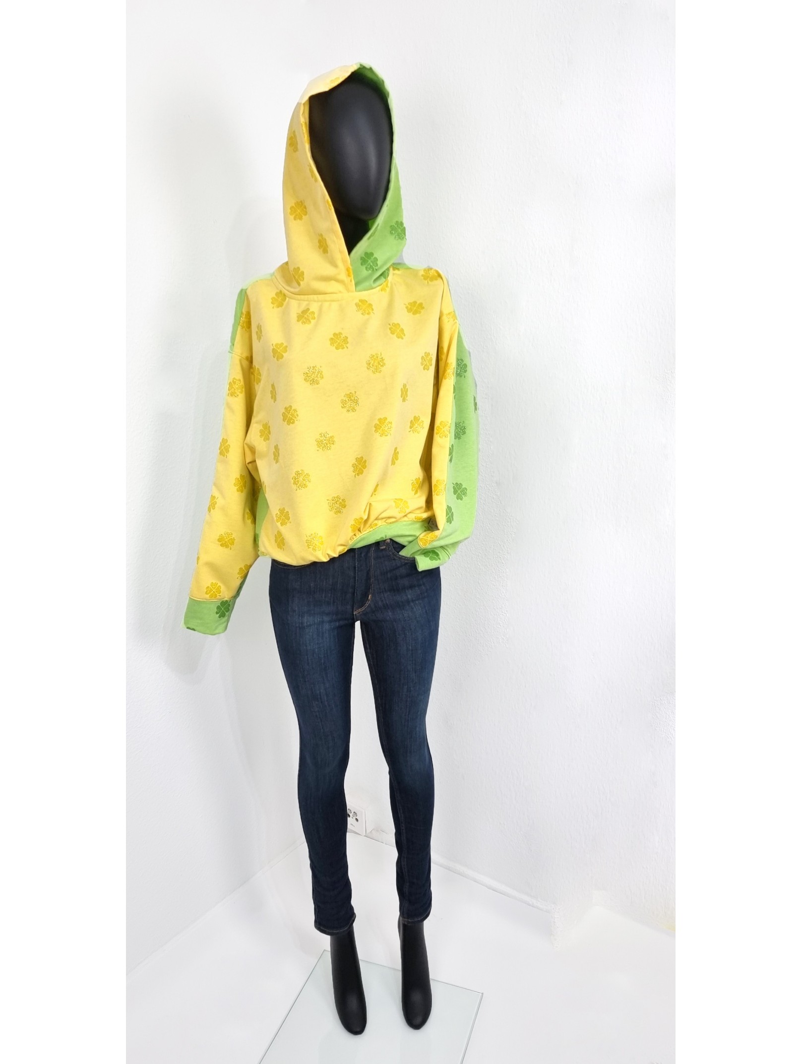 Kapuze 1-lagig, halb gelb & halb grün – ein echter Eyecatcher