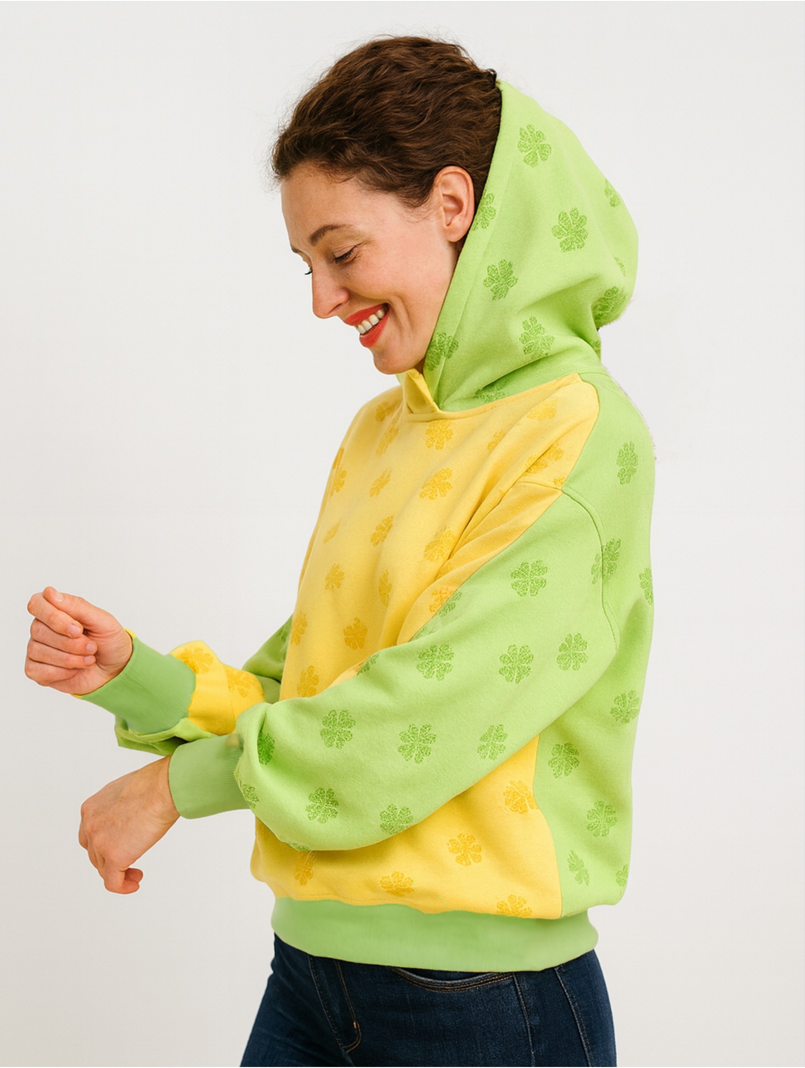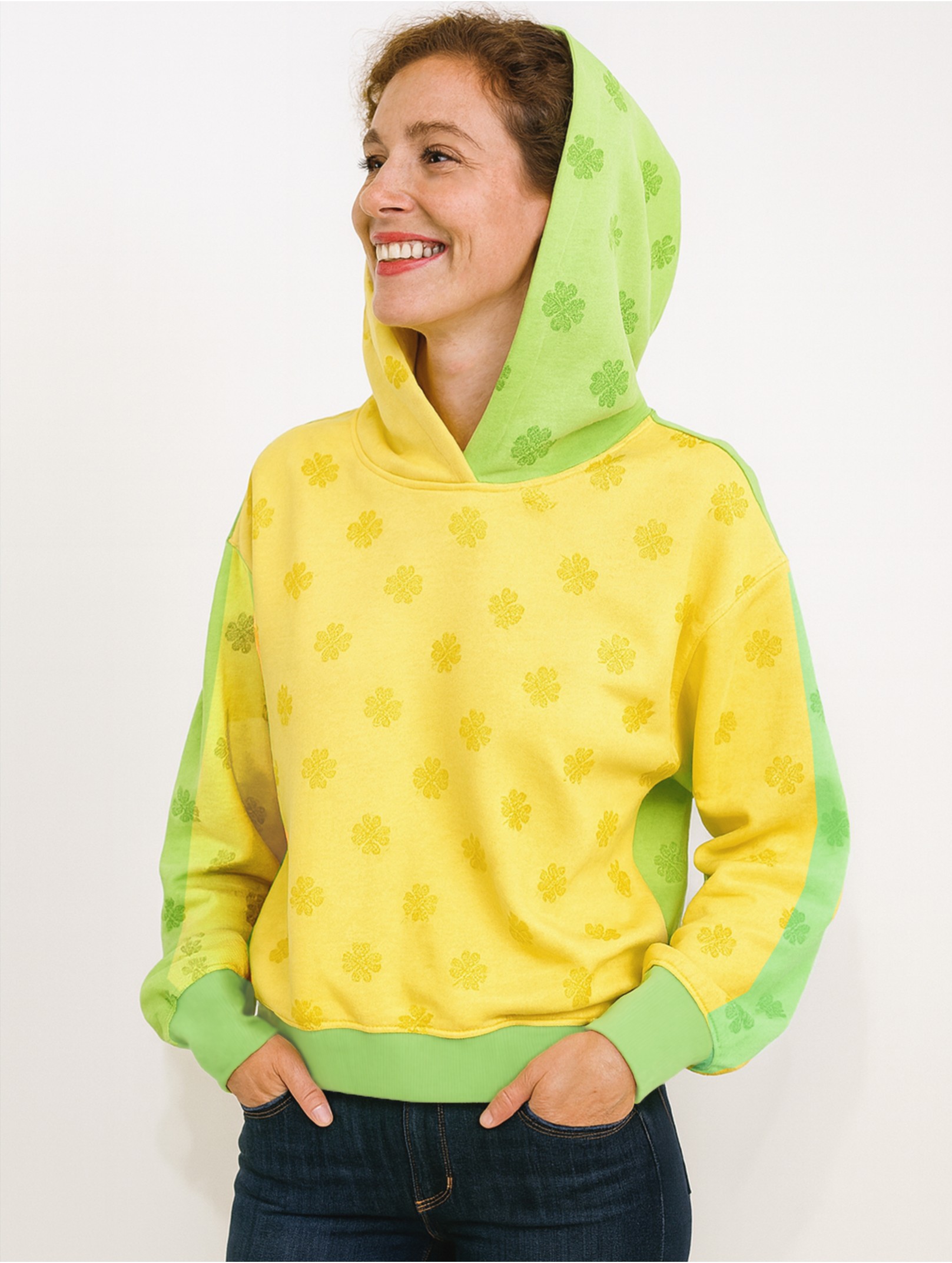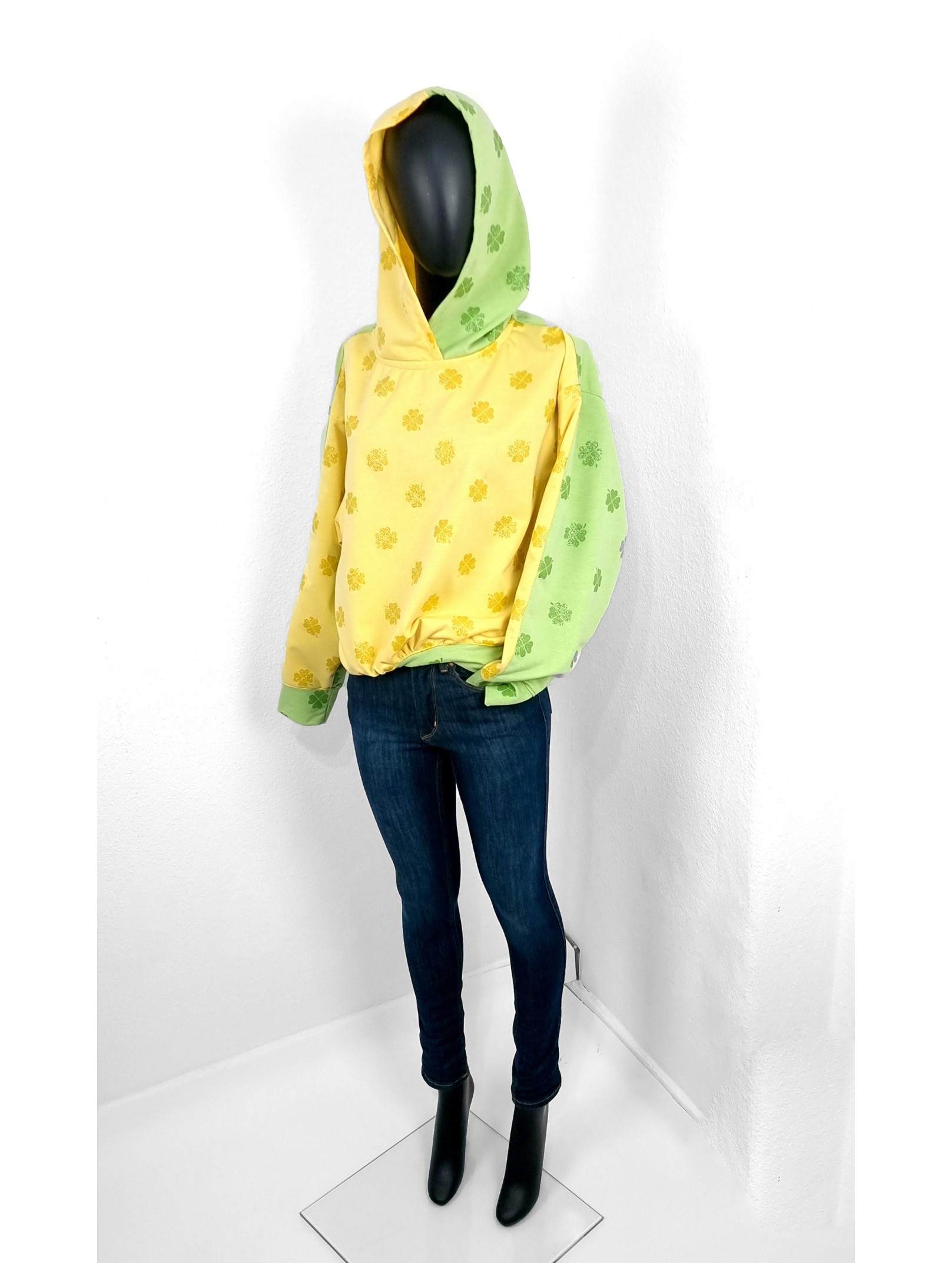 Kapuze 1-lagig, halb gelb & halb grün – ein echter Eyecatcher