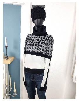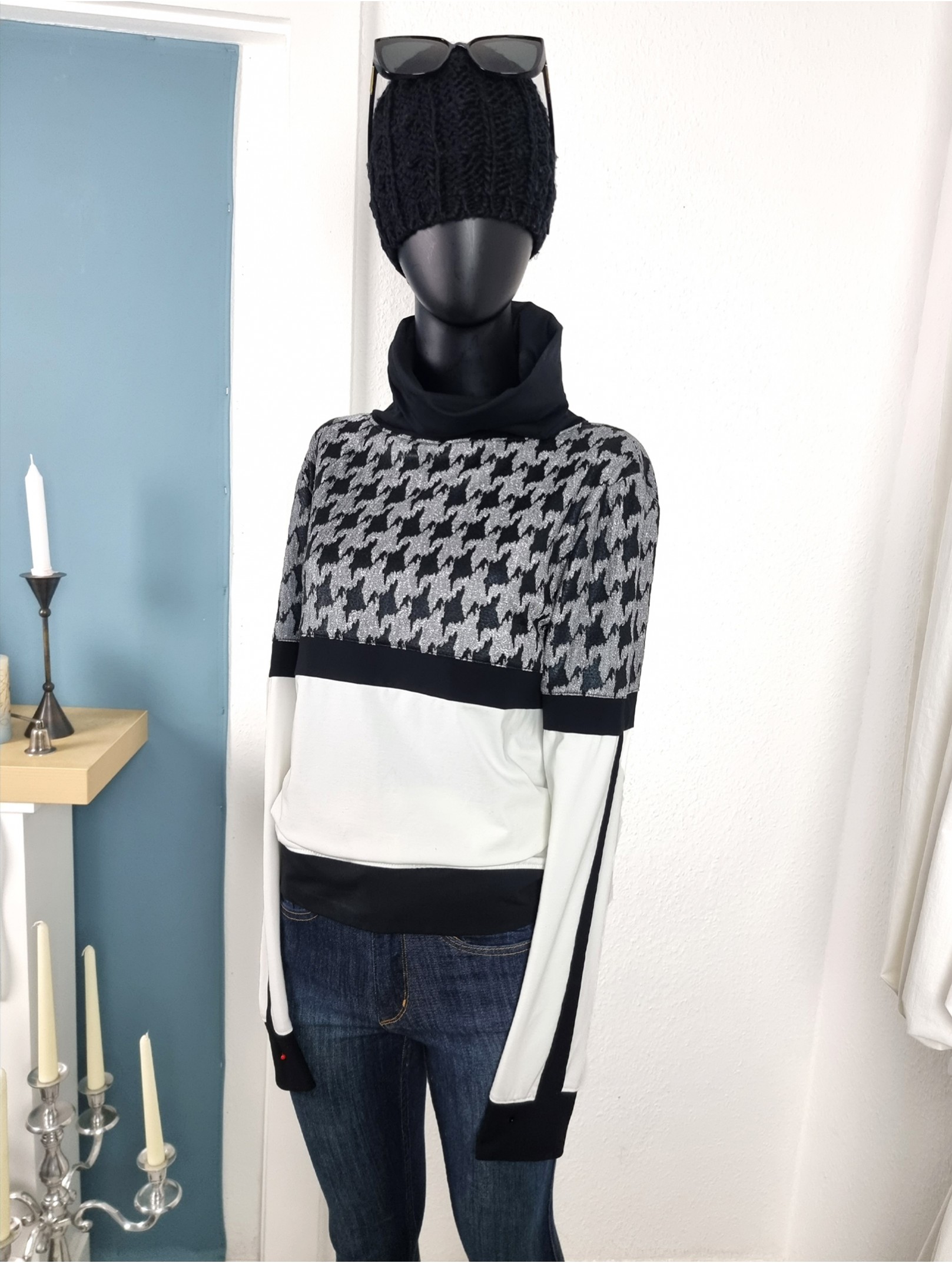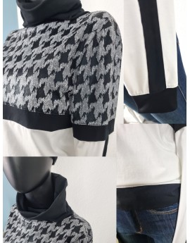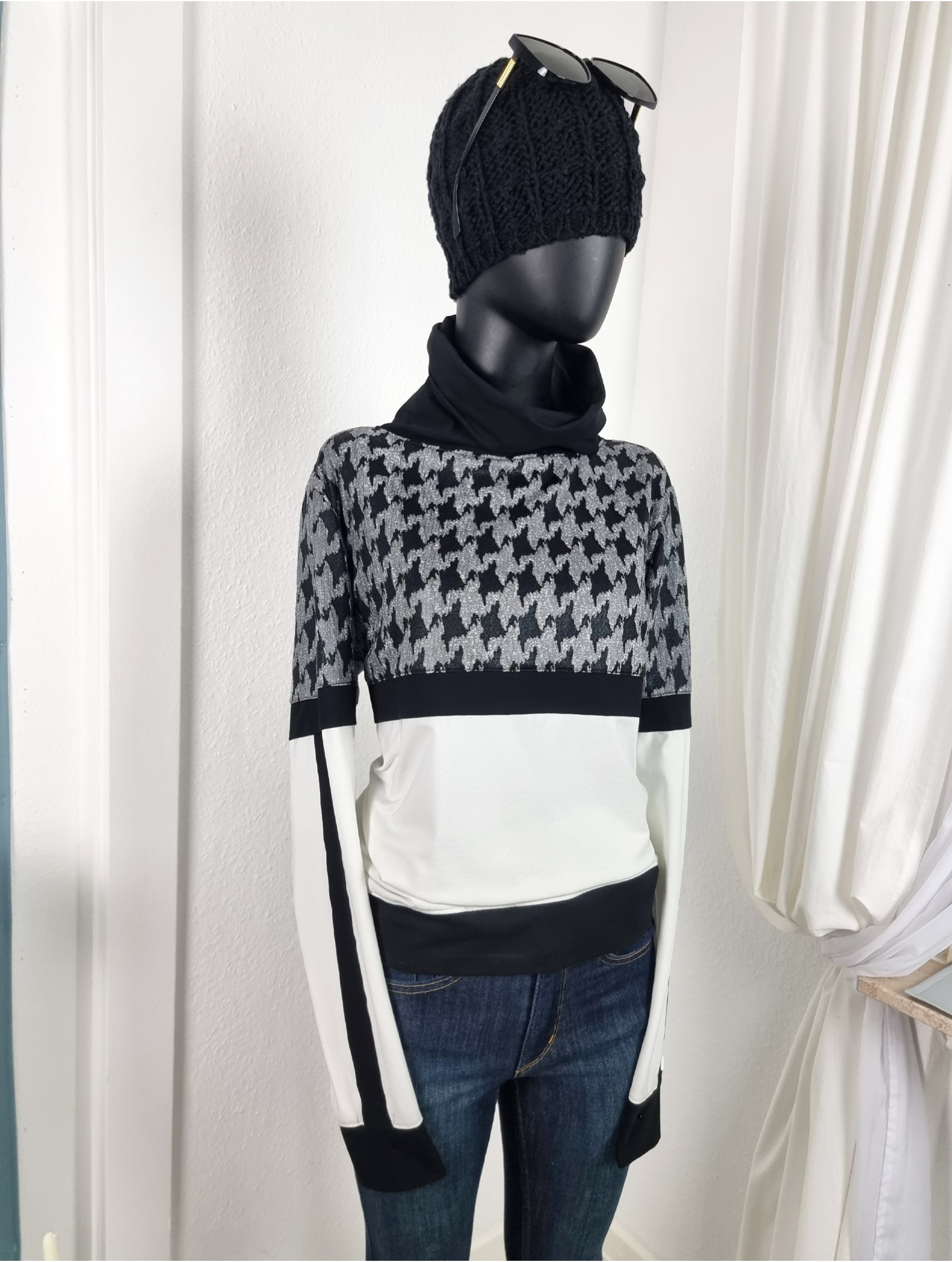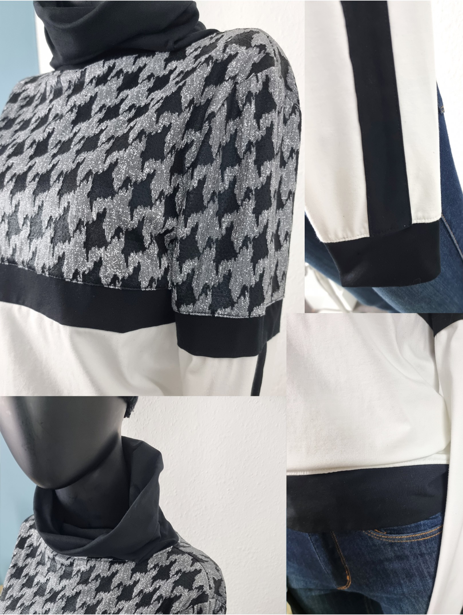 Stoffkombination aus : Weiß und Schwarz : Baumwolljersey, gemusterte Teil: Polyester - Romanit Jersey.