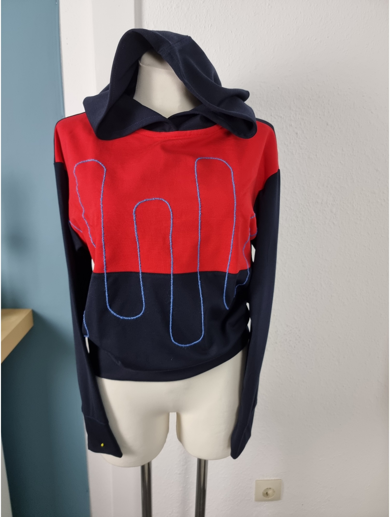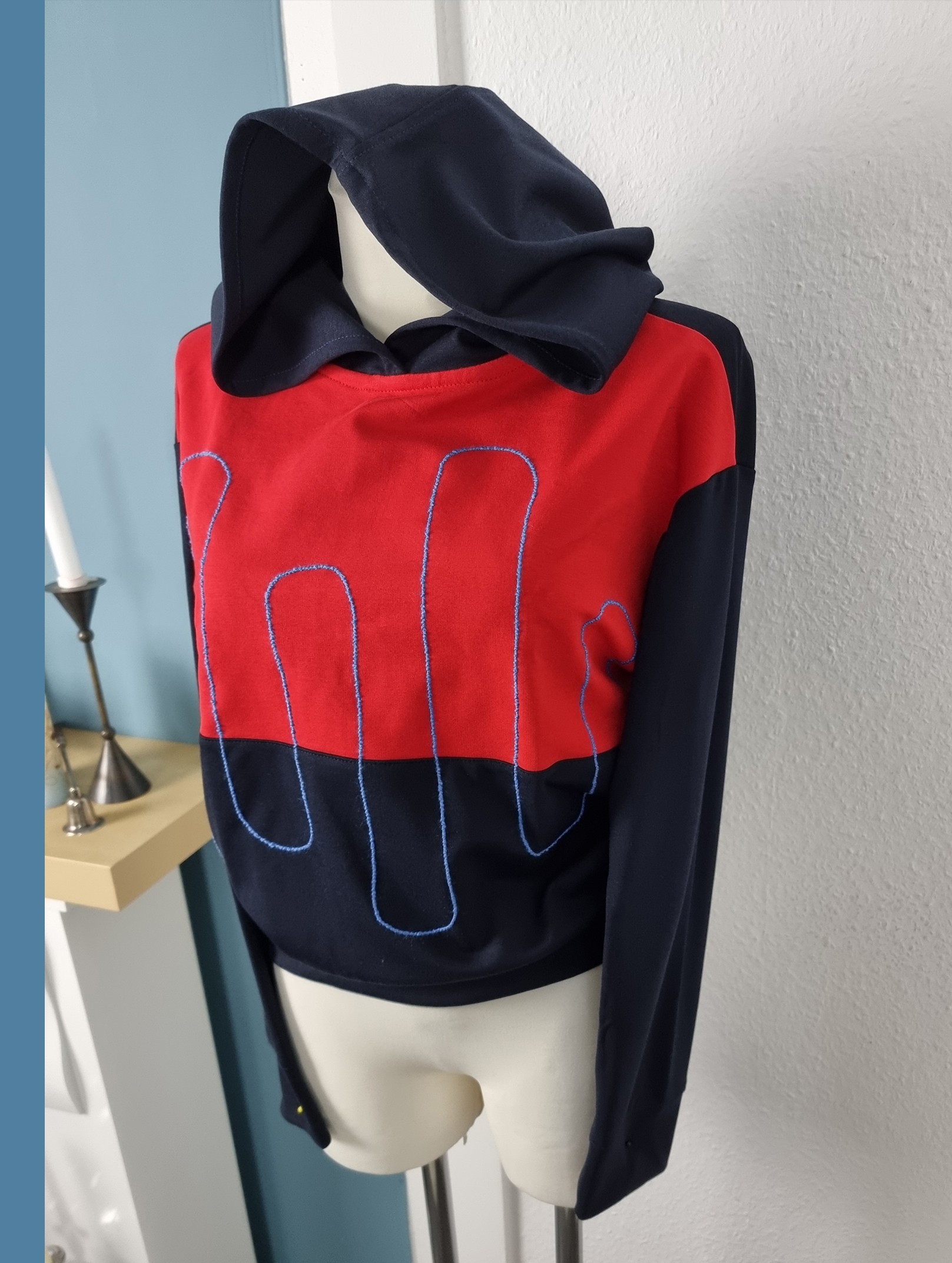 ✔ Stoff: Weicher Romanit-Jersey (Viskose/Polyester) kombiniert mit rotem Baumwolljersey