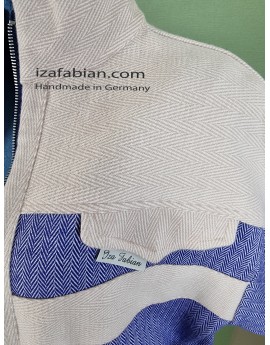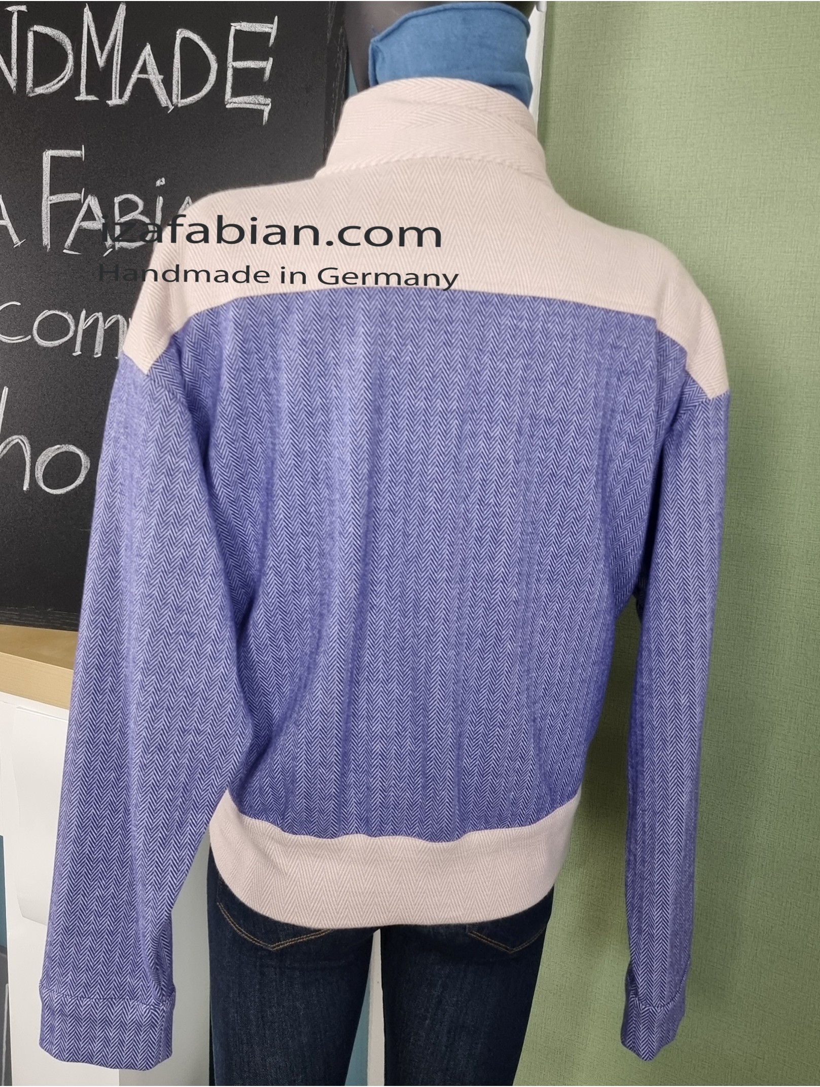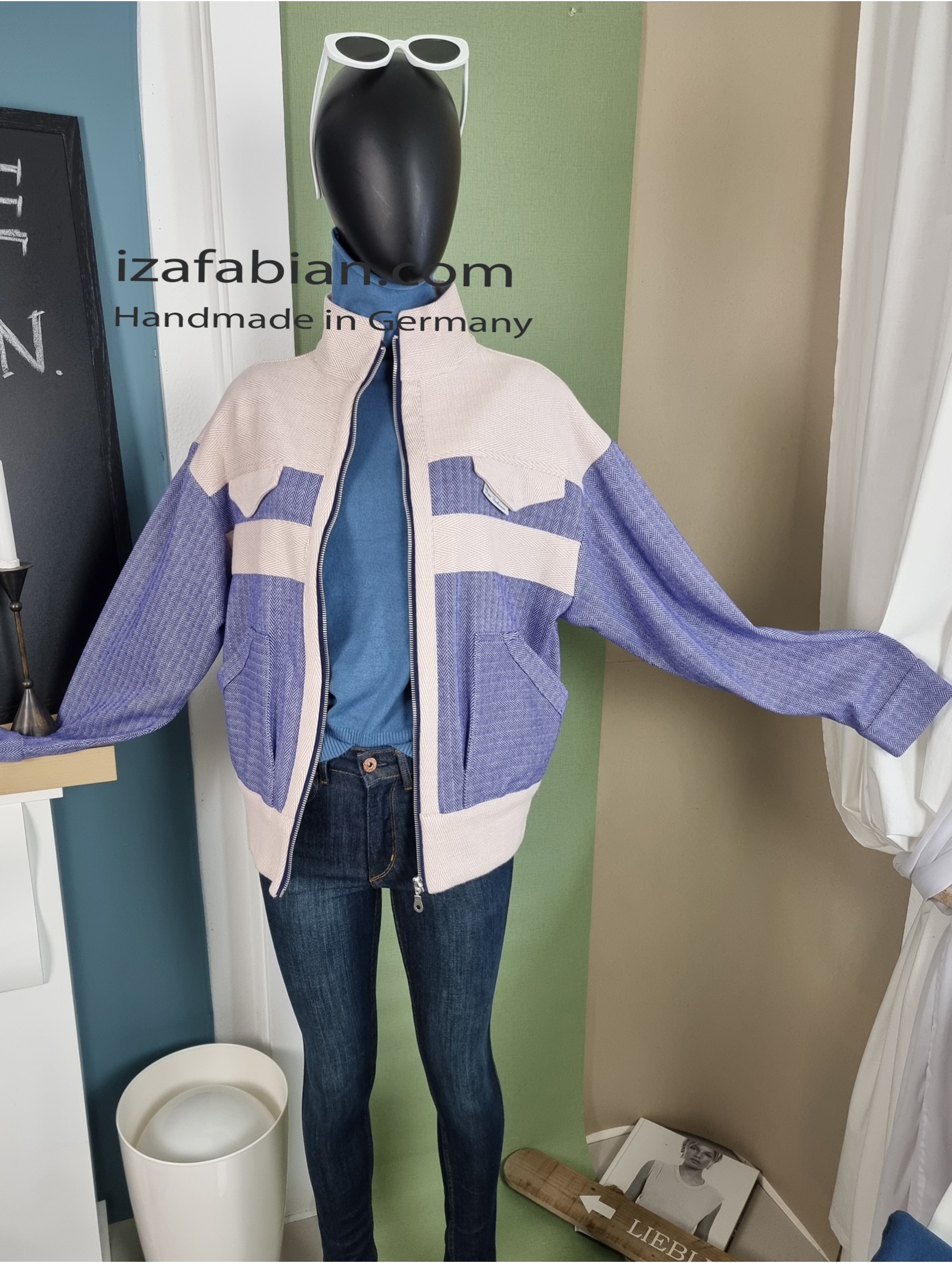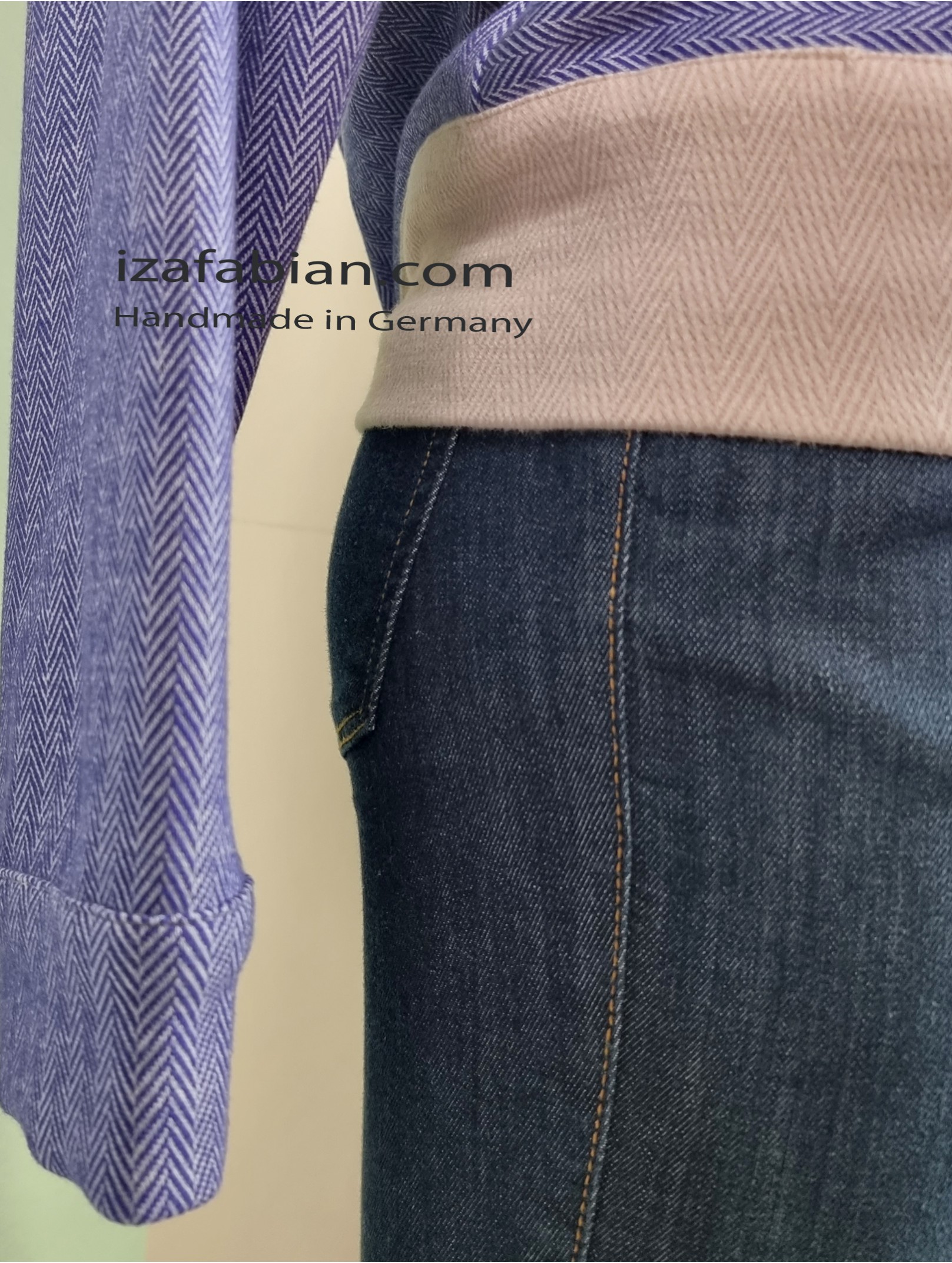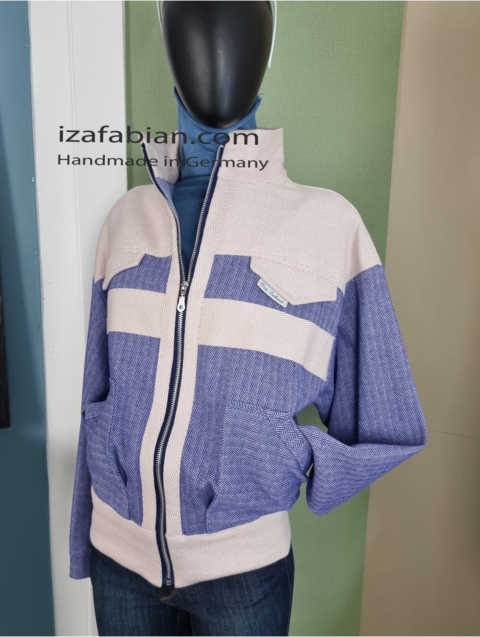 Wird im Atelier sorgfältig nach Bestellung genäht – jede Jacke ein einzigartiges Signature Piece von Iza Fabian.