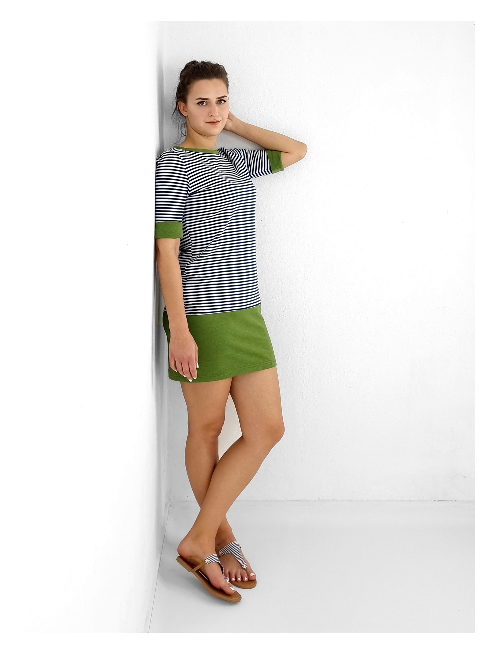 Freizeit Kleid aus Baumwolljersey in Streifen Look.