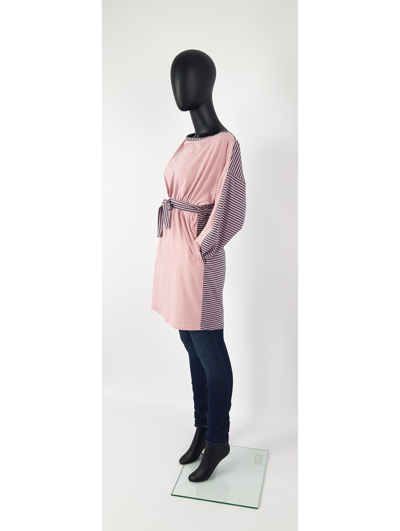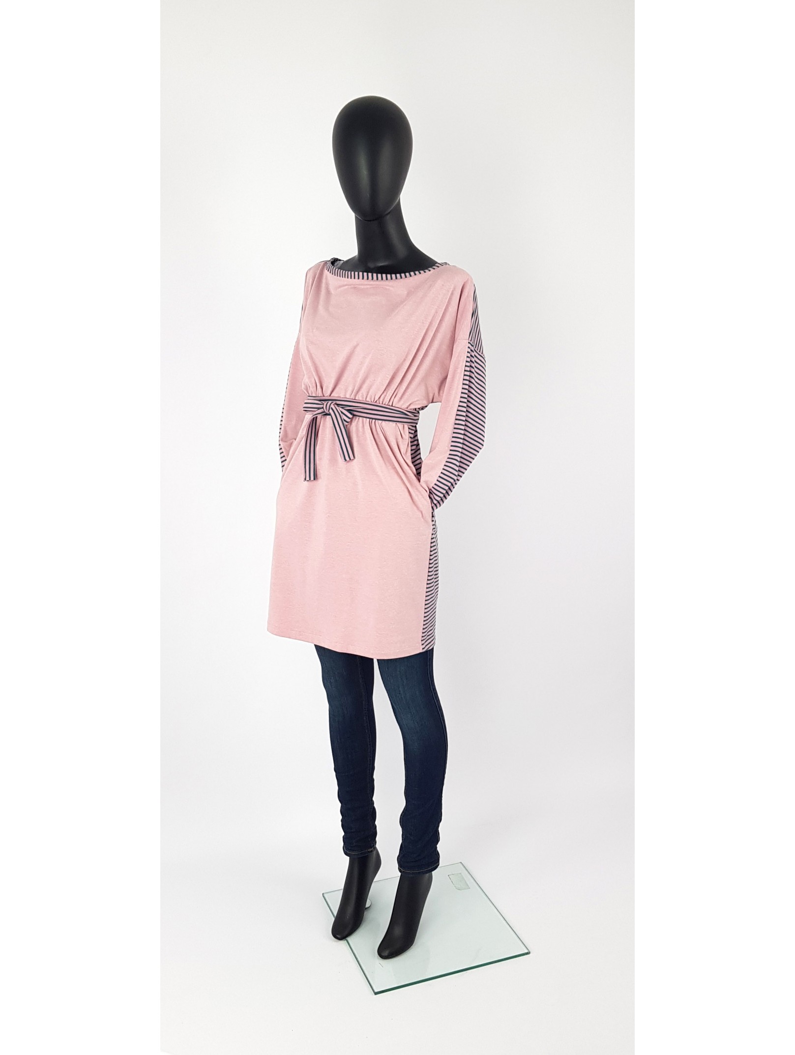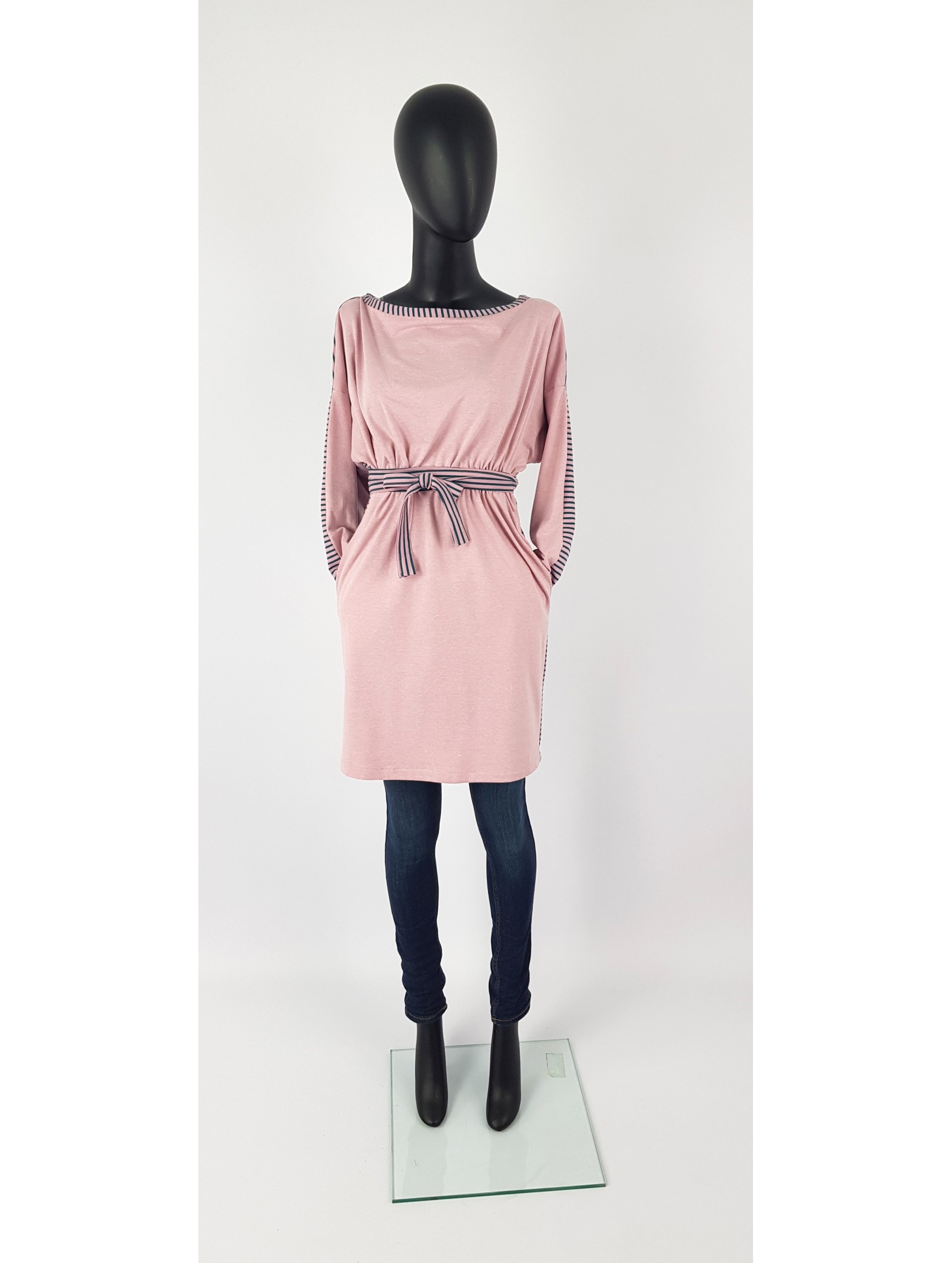 Iza Fabian Kleid Altrosa streifen am Rücken