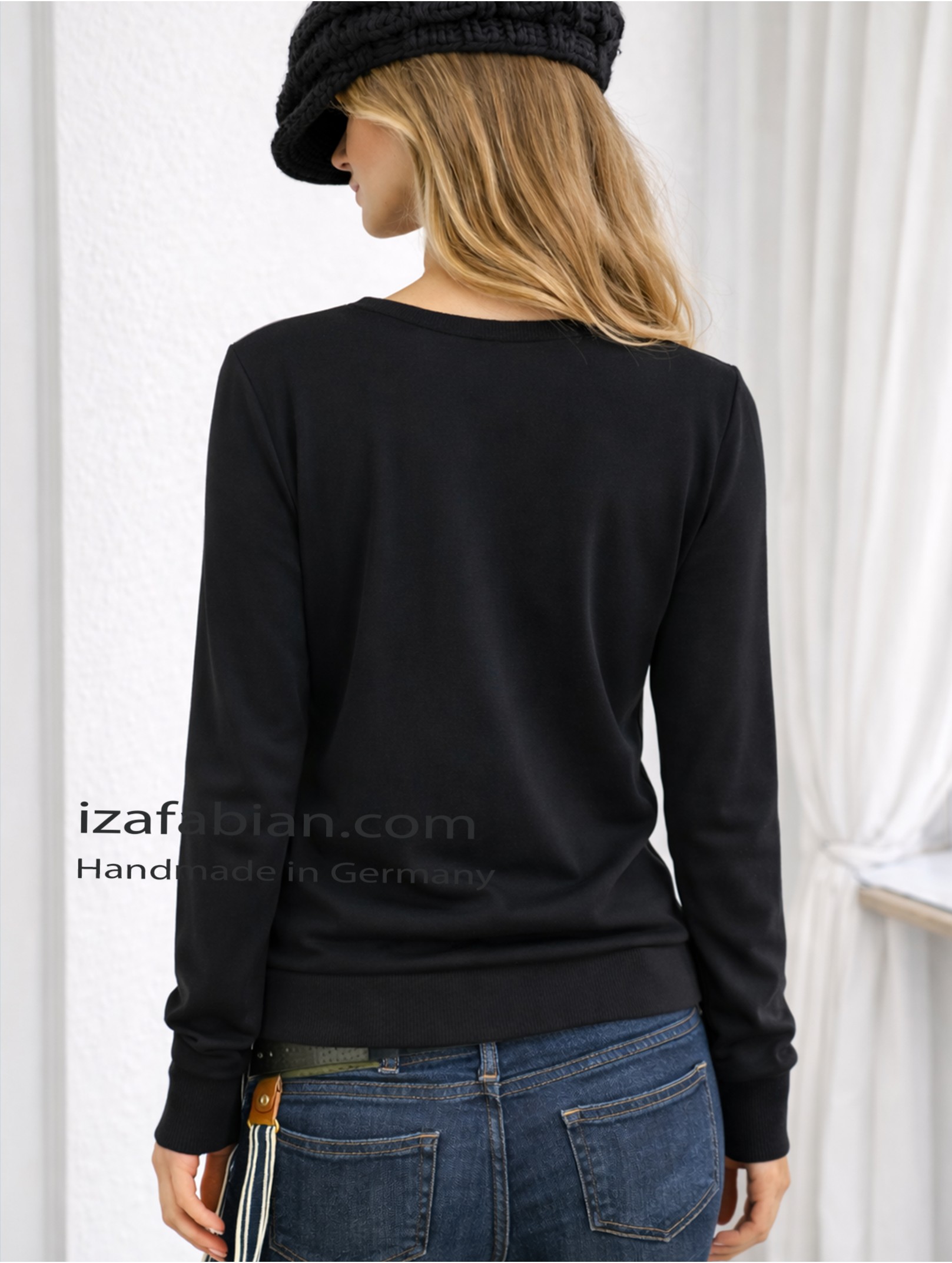 Dieser Pullover wird erst nach Bestellung von mir persönlich in Handarbeit gefertigt. Einzelstück-Charakter – solange der Stoffvorrat reicht.