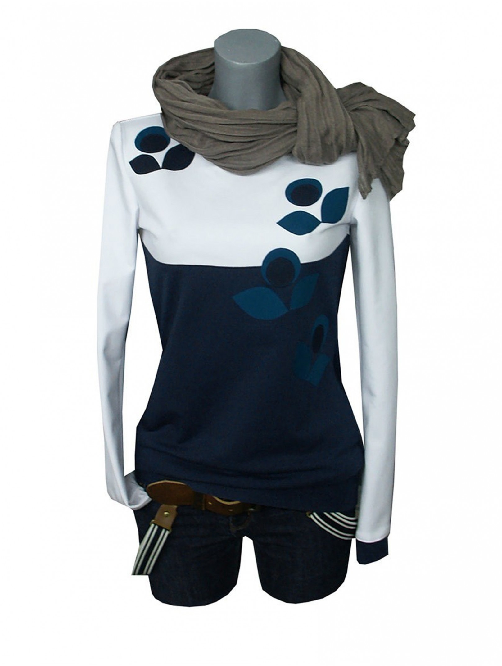 Zweifarbig: Oberteil + Ärmel in Cremeweiß, ab der Brust in Marineblau
