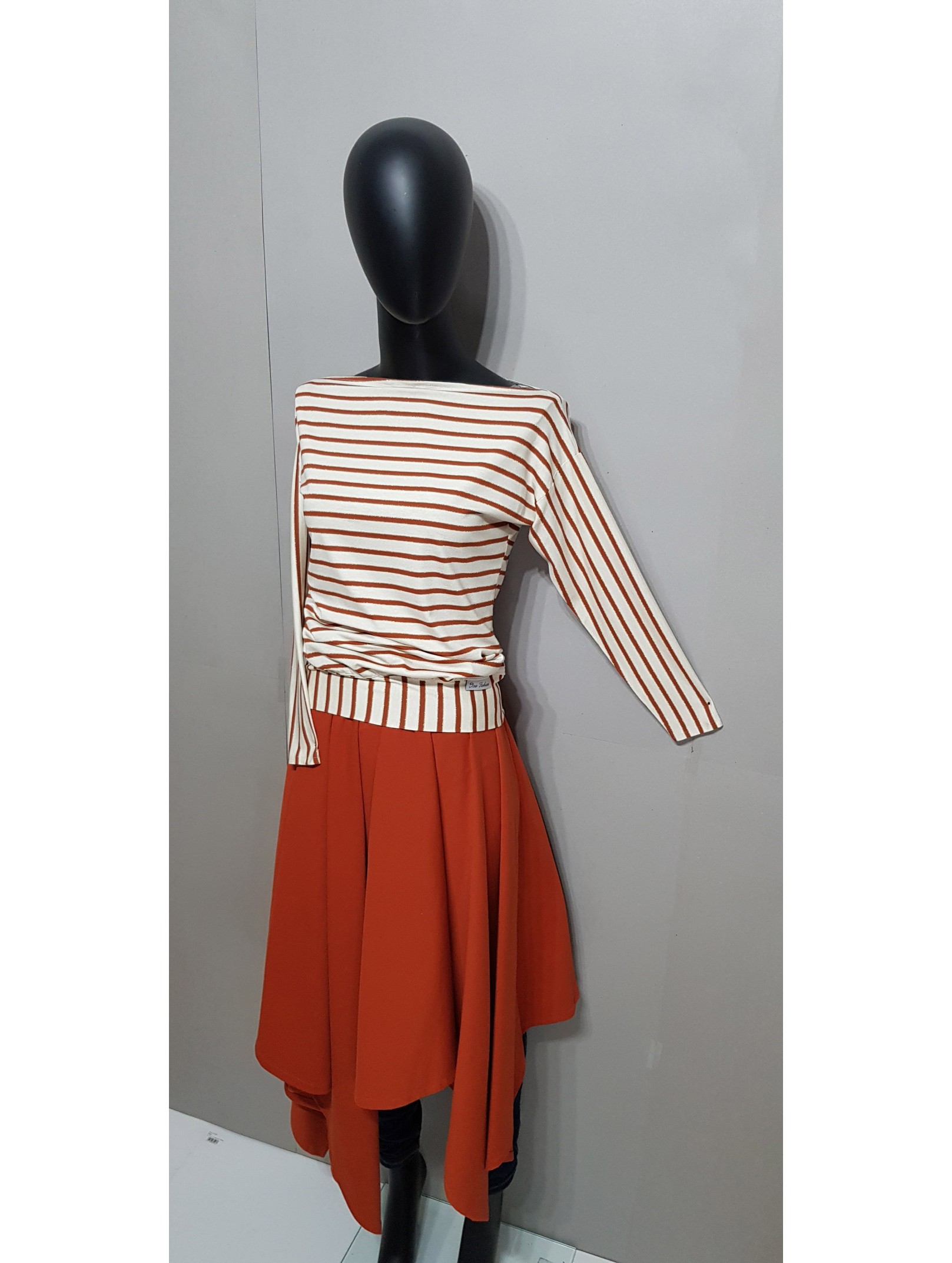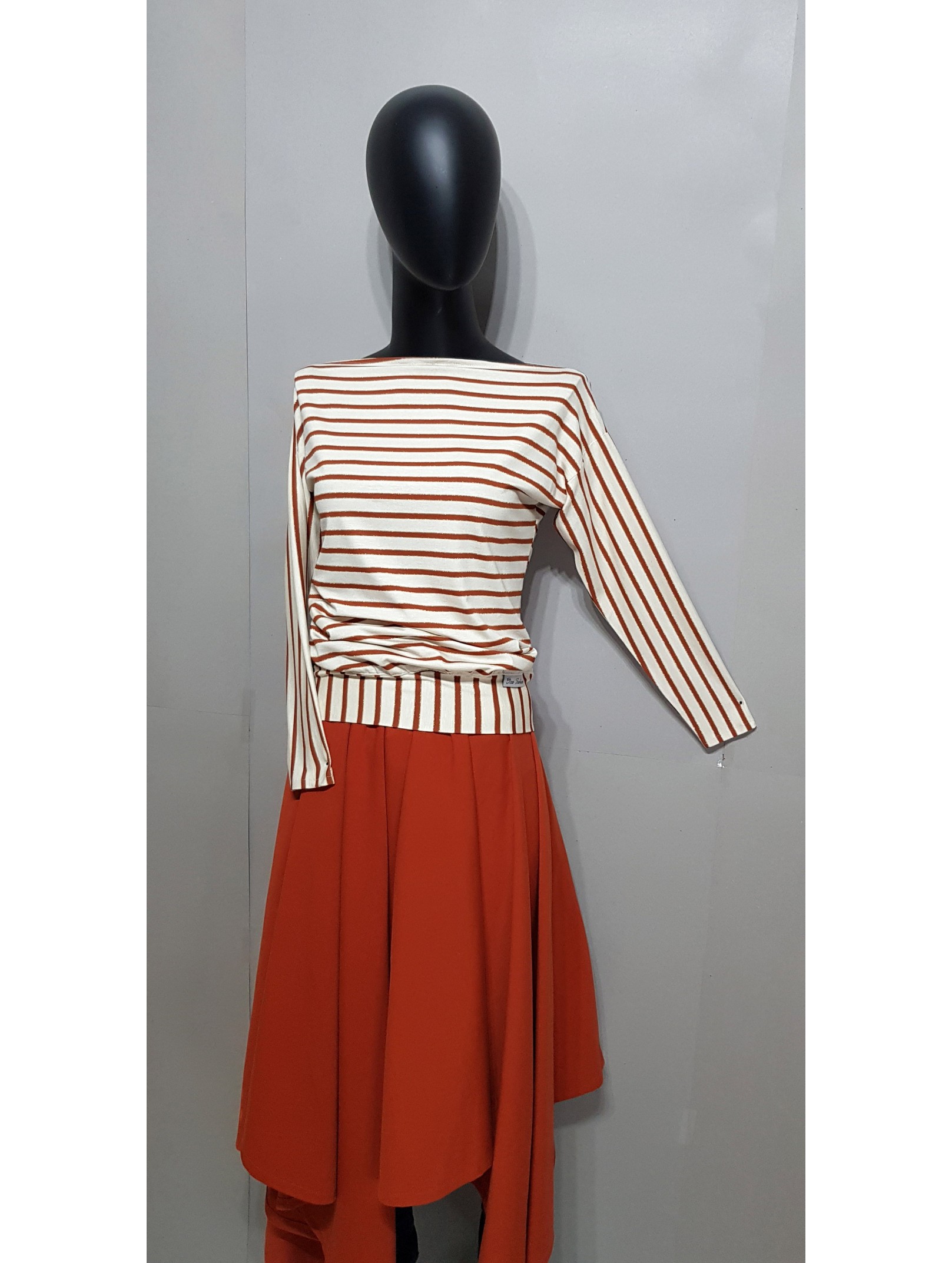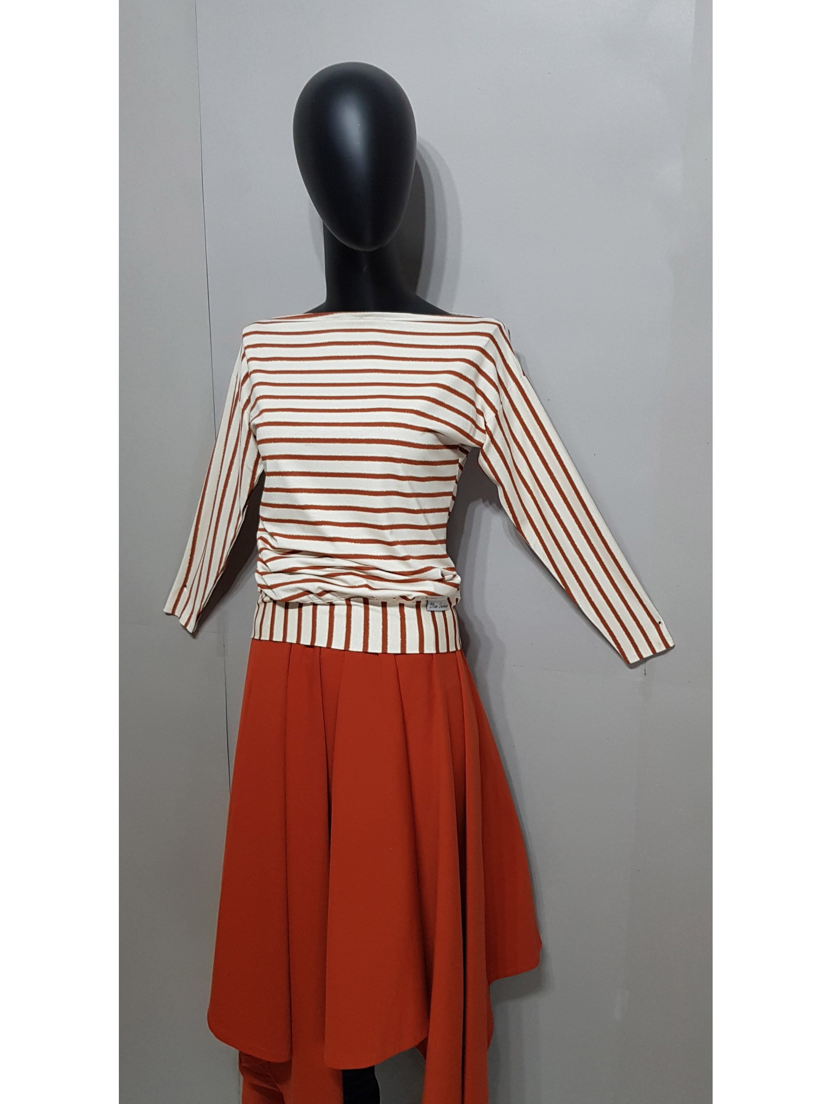 Farben: Creme und Rostbraun im Streifenmuster, dazwischen feine Lurexfäden mit elegantem Schimmer