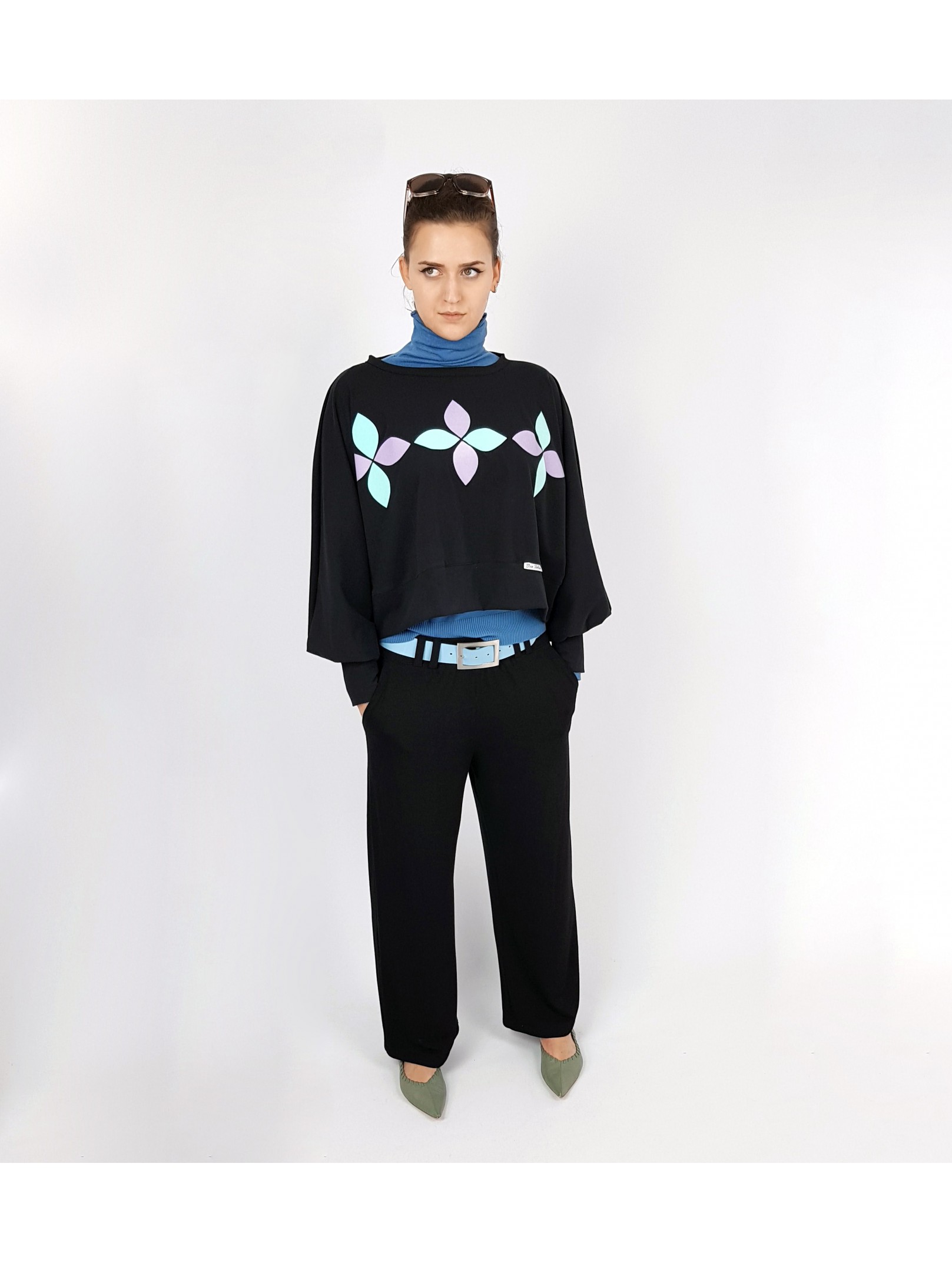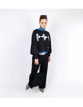 -Samt Applikationen in Mint und Lila