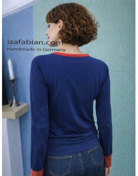 Ein moderner Retro-Look mit urbaner Note. Dieses Longsleeve kombiniert kräftiges Marineblau mit leuchtendem Rot und schafft so einen klaren, lebendigen Kontrast – perfekt für Alltag, Freizeit und City-Outfits.