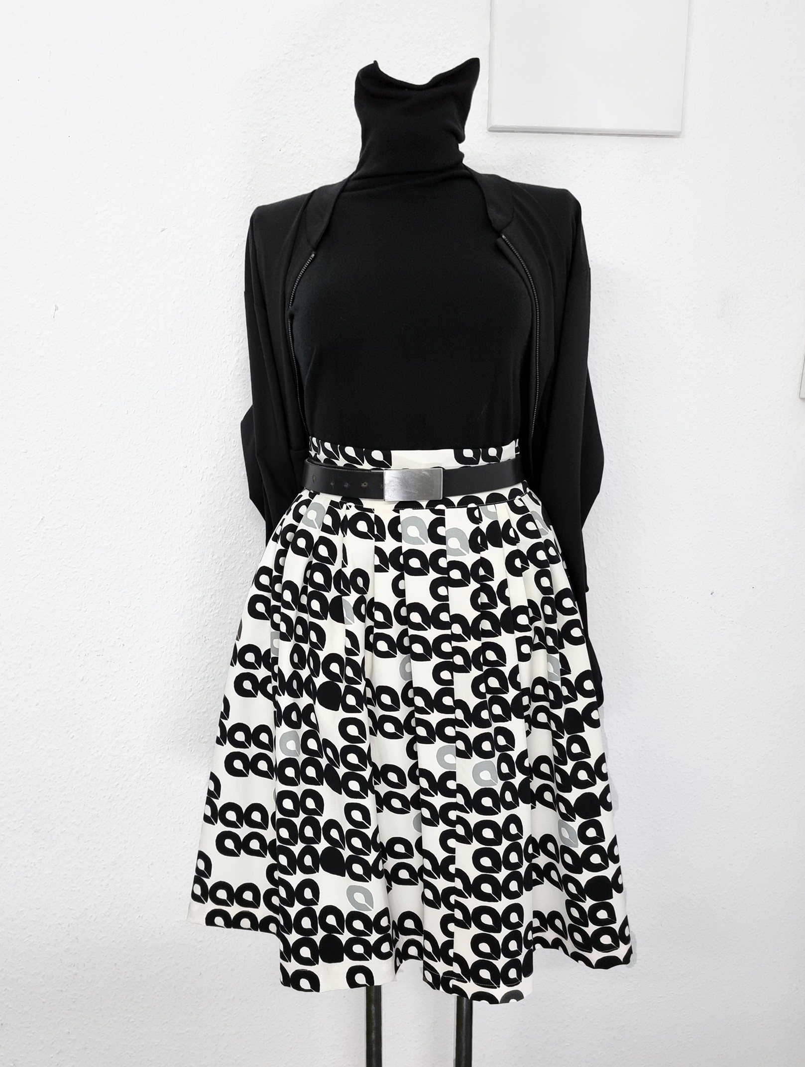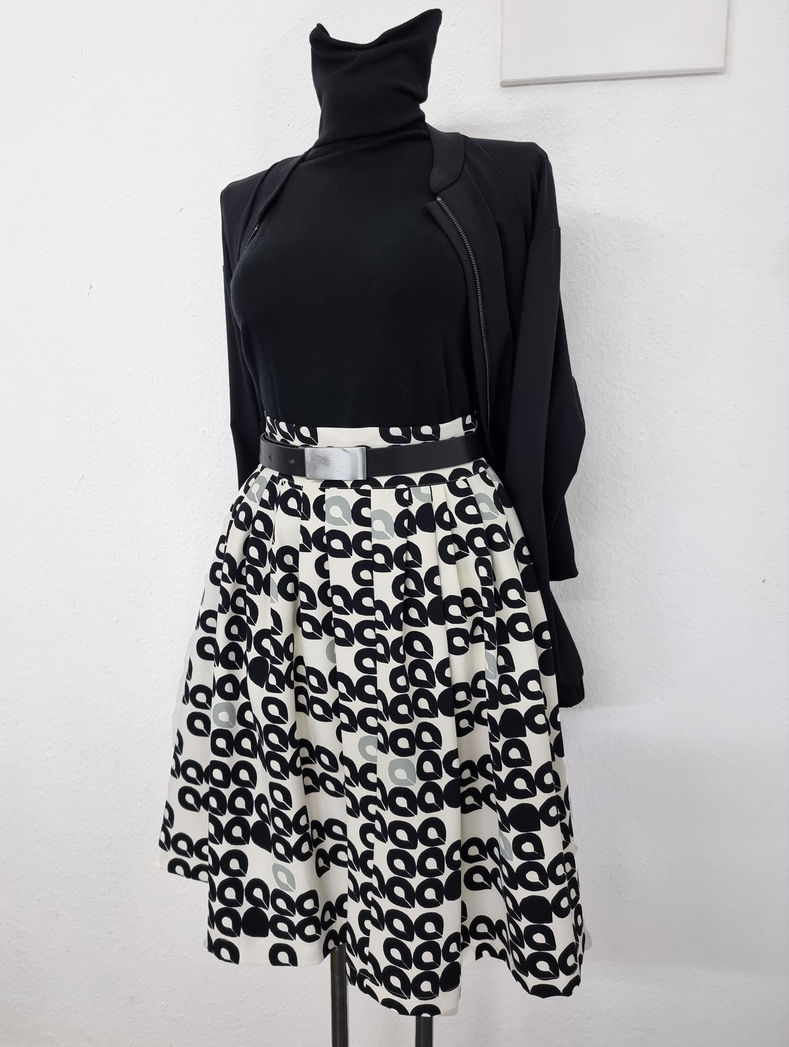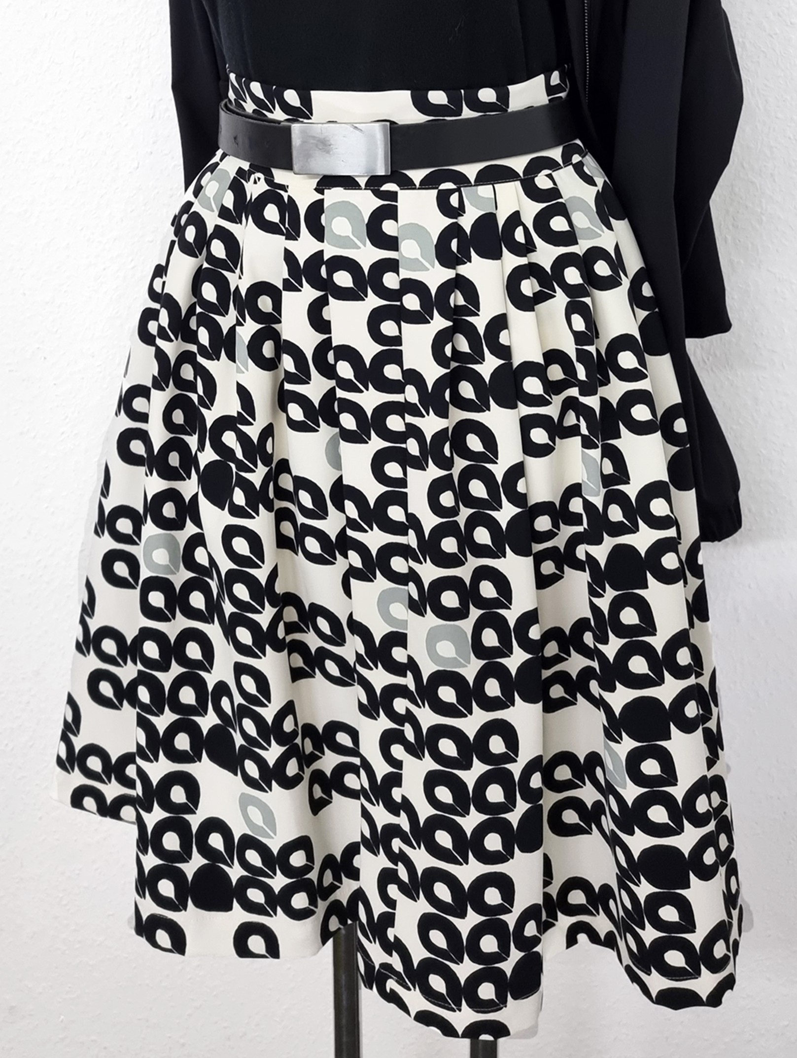 Falten Rock mit Retro Muster, an der Seite Reißverschluss, Breite Bund.