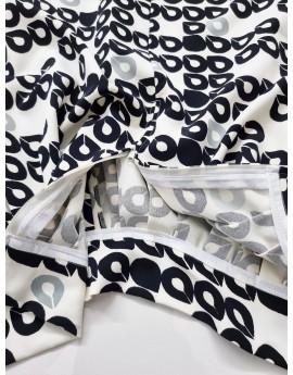98% Polyester 2 % Elasthan, schöner, dickerer Stoff. Kein Jersey.