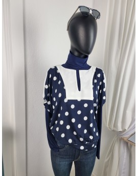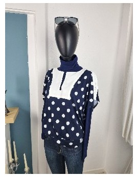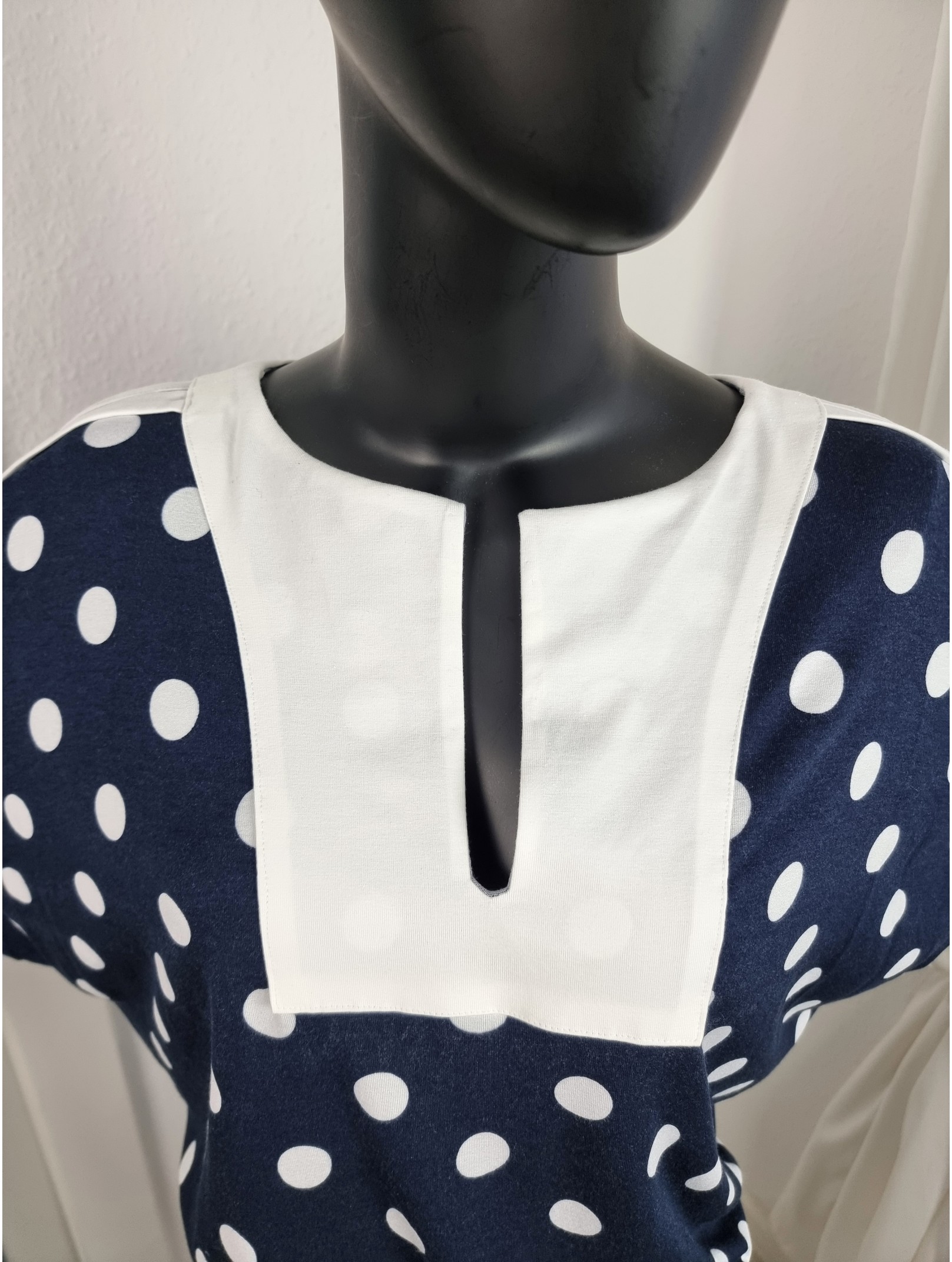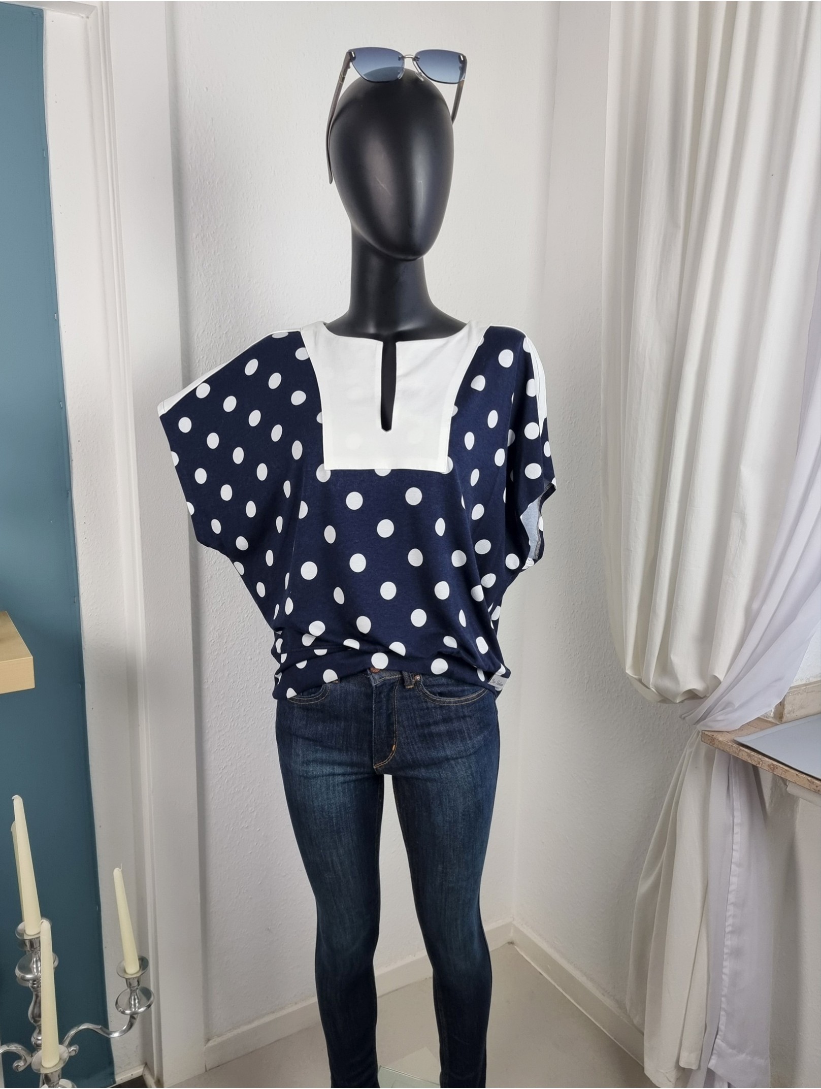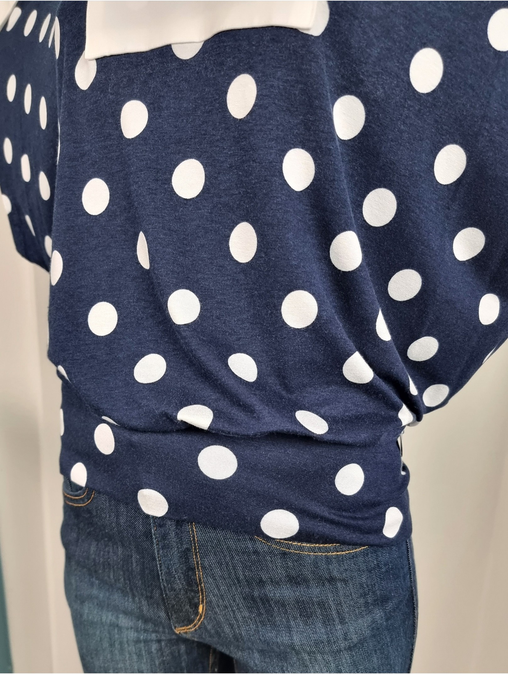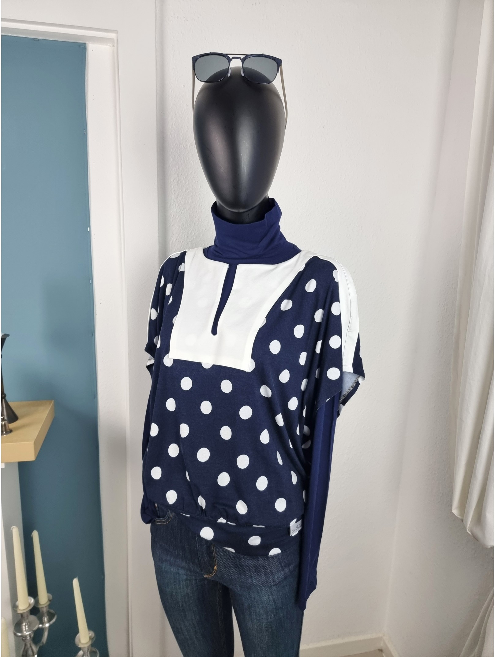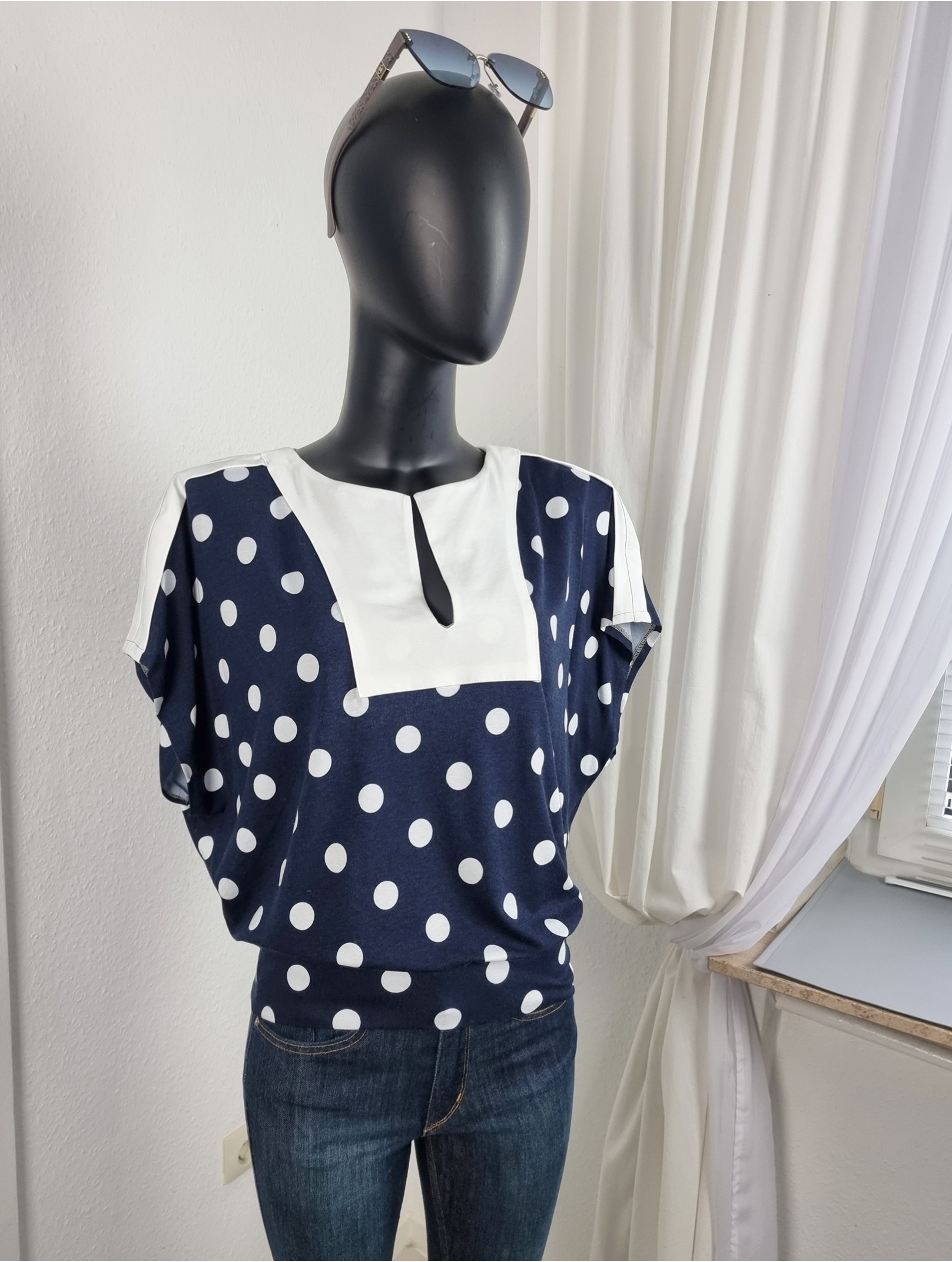 Ein echter Blickfang: Dieses Shirt/Pullunder vereint verspielte Punkte mit einem lockeren, retro-inspirierten Schnitt. Perfekt solo im Sommer oder als Pullunder kombiniert mit anderen Teilen im Herbst/Winter. ( Ohne Rollkragenpullover ! )