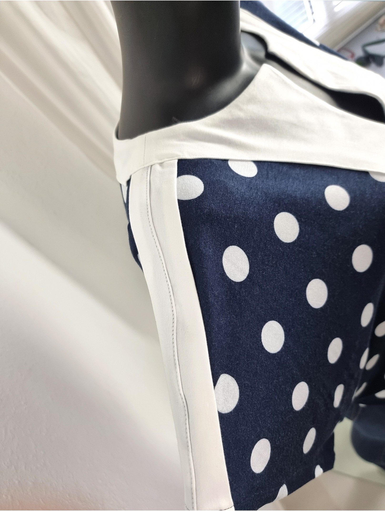 Hauptfarbe: Marineblau mit großen weißen Dots