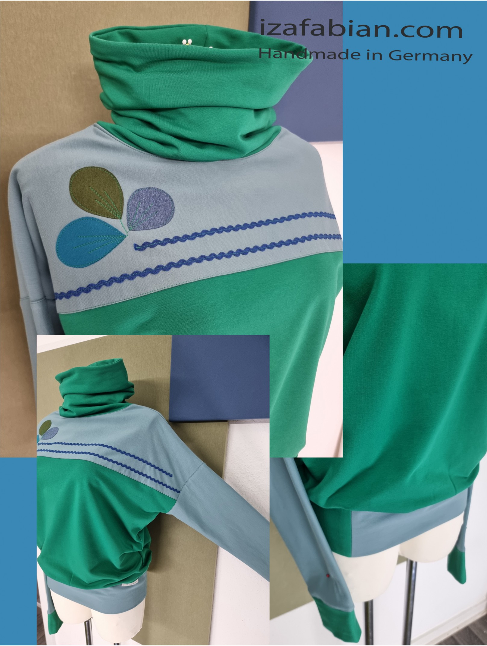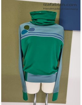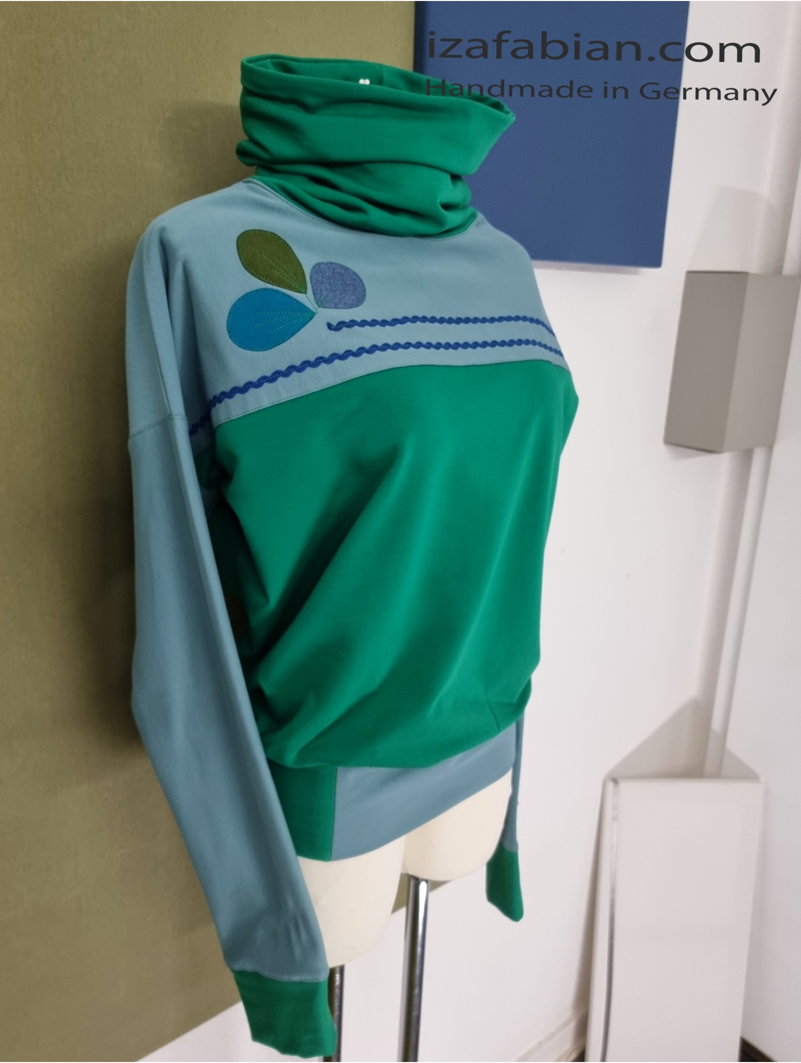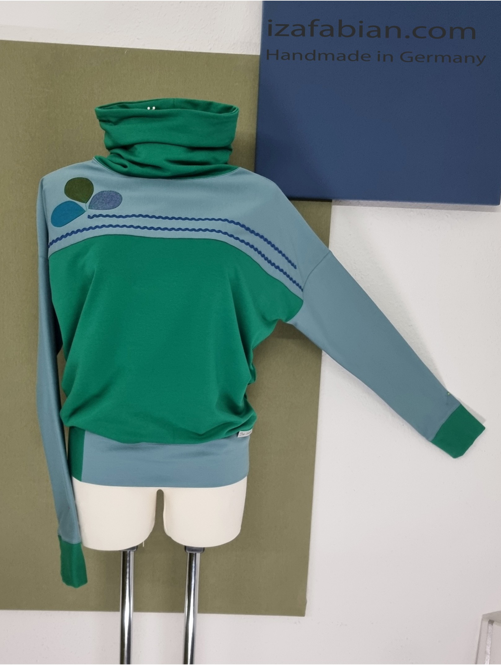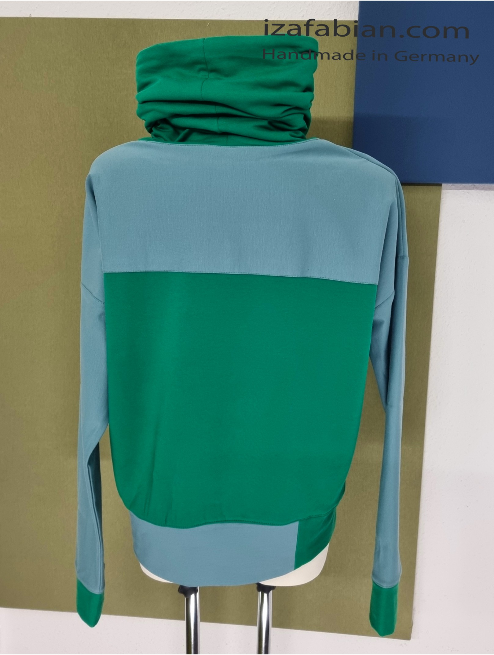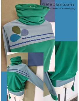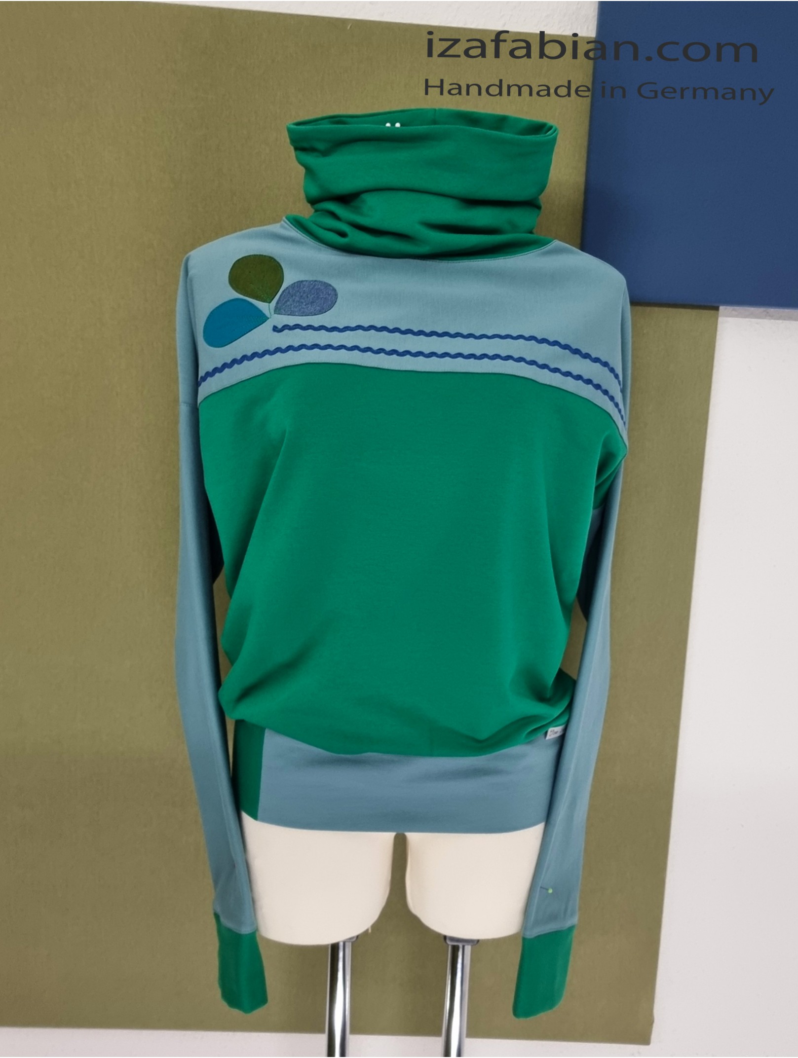 Gr. 42-44. Winter Rollkragen Pullover aus Jersey Stoffen in Grün und Blaugrün. Die Stoffe sind perfekt für die kalte tage, da die innen Fleece ähnlichen Beschichtung haben, der wärmt.